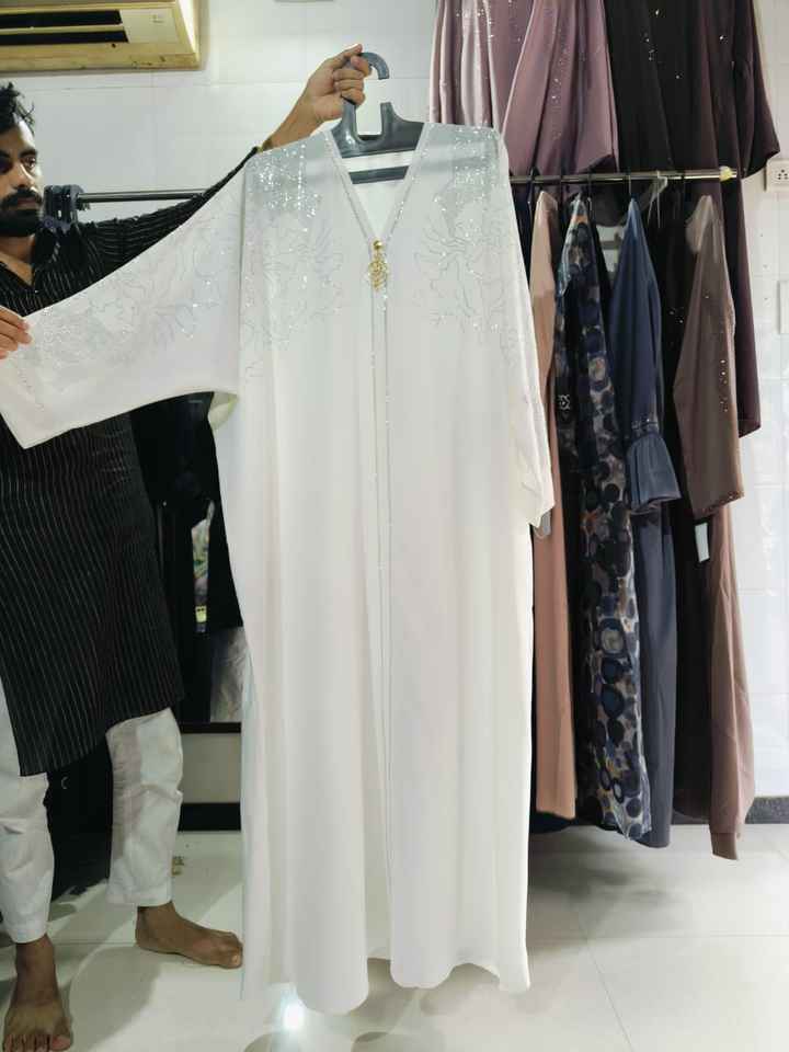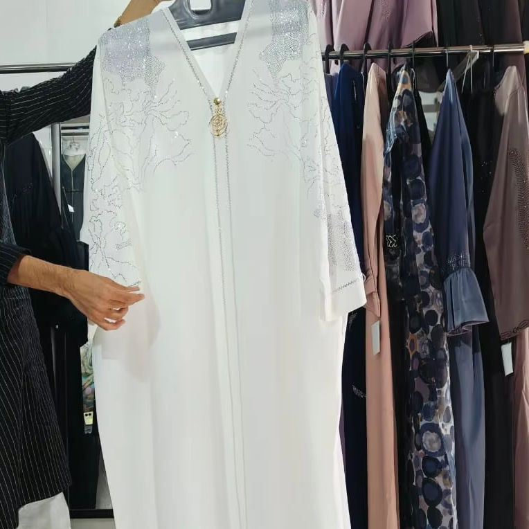 ชุดเดรสมุสลิมแบบดั้งเดิมระบายอากาศได้ชุดเดรสทำงานประดับด้วยหินปักด้วยมือหรูหราสำหรับผู้หญิง
