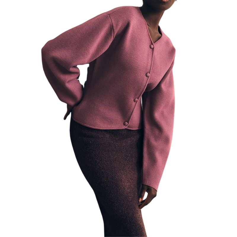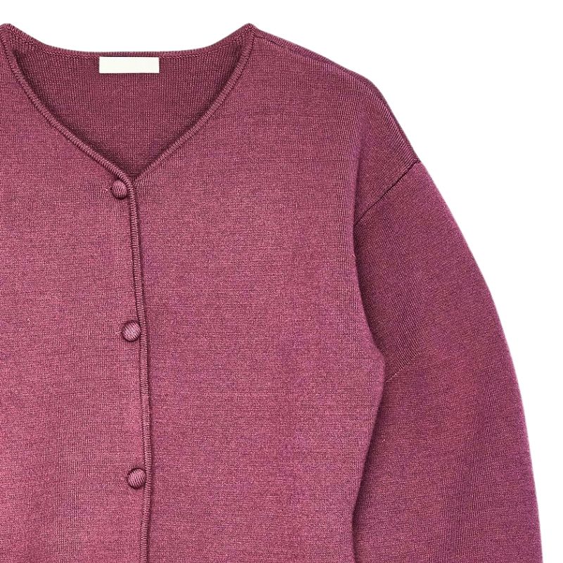 เสื้อสเวตเตอร์ถักคอวีแขนยาวสำหรับสาวออฟฟิศหรูหราสีทึบมีกระดุมแบบลำลองทรงสลิมฟิตทำจากผ้าถัก