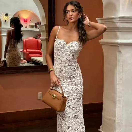 เดรสยาวทรงดินสอผู้หญิง ดีไซน์หรูหรา แต่งลูกไม้ลายดอกไม้ สายเดี่ยว เหมาะสำหรับงานทางการ เป็นมิตรต่อสิ่งแวดล้อม ระบายอากาศได้ดี พิมพ์ลายดิจิทัล กันยับ