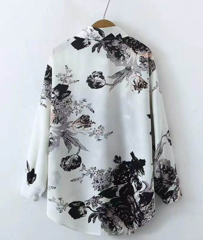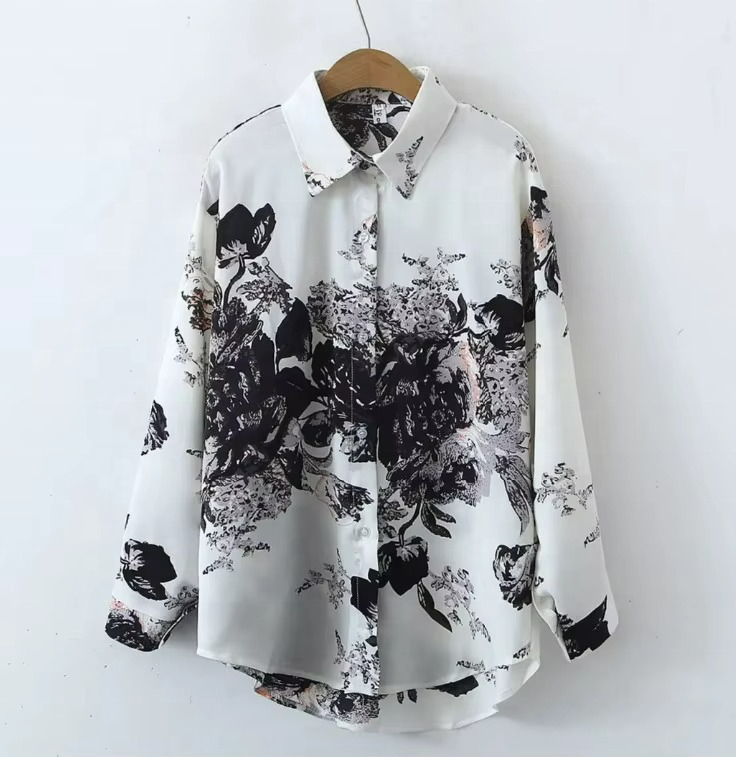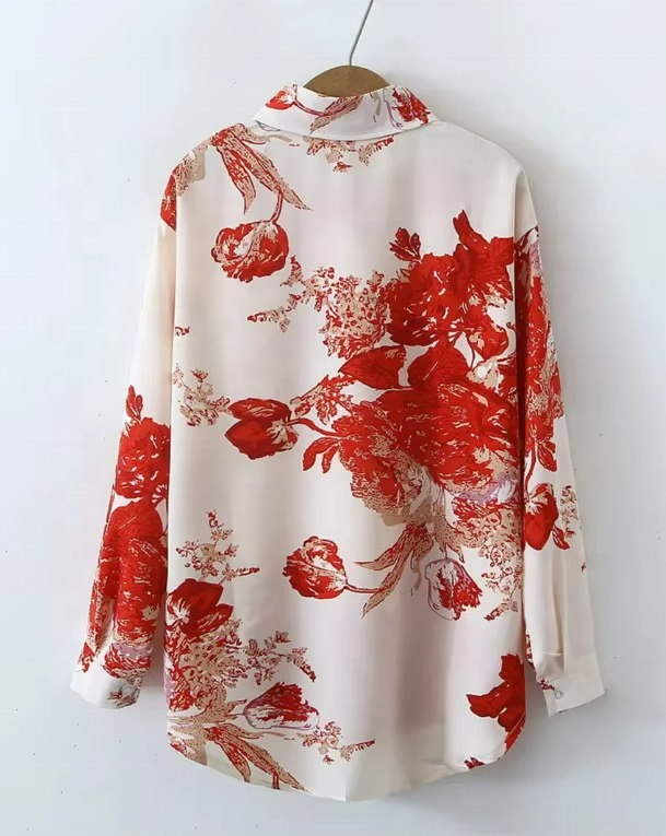เสื้อเชิ้ตผู้หญิงลายพิมพ์สวยหรู สวมใส่สบายสำหรับฤดูใบไม้ผลิและฤดูร้อน ระบายอากาศได้ดี พร้อมงานปักและตกแต่งกระดุม โลโก้ติดด้านหน้า