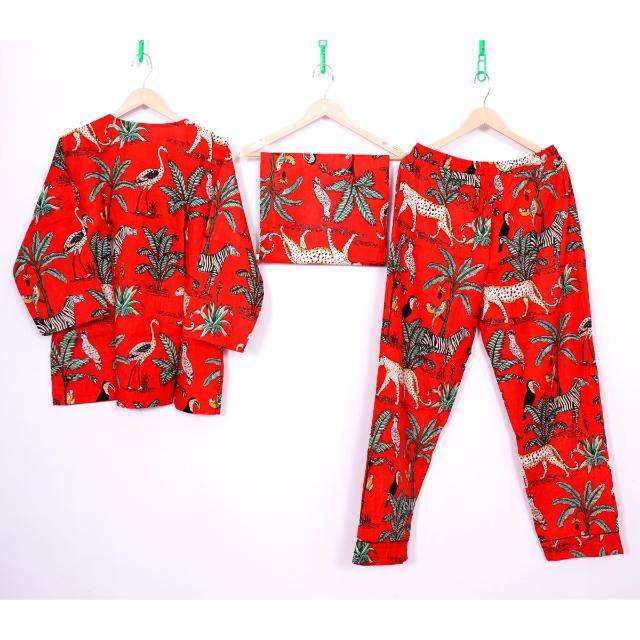 ชุดนอนผ้าซาตินลายดอกไม้คุณภาพดีสำหรับผู้หญิง แขนยาว คอกลม เอวยางยืด ระบายอากาศได้ดี สวมใส่สบาย
