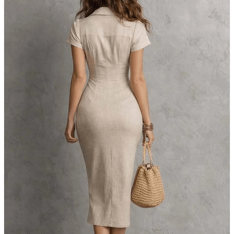 เดรสมิดิรัดรูปจับจีบสำหรับผู้หญิงผ่าหน้าและปกเสื้อ