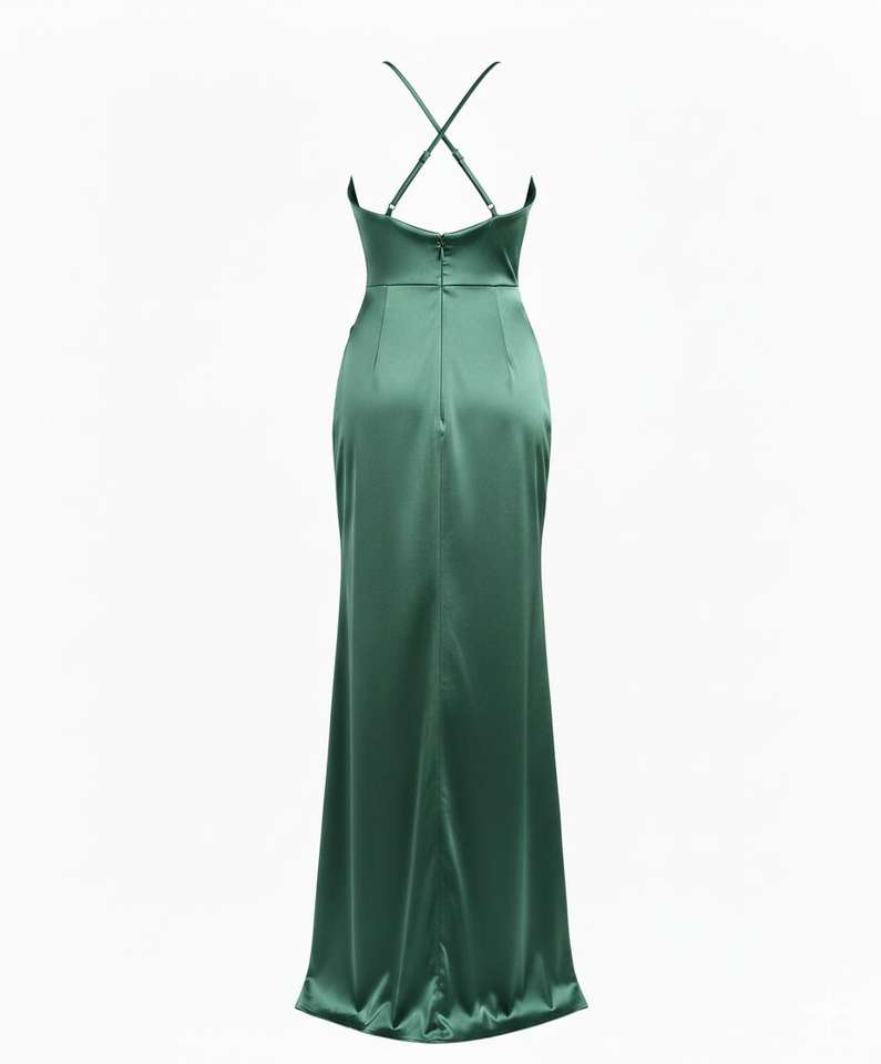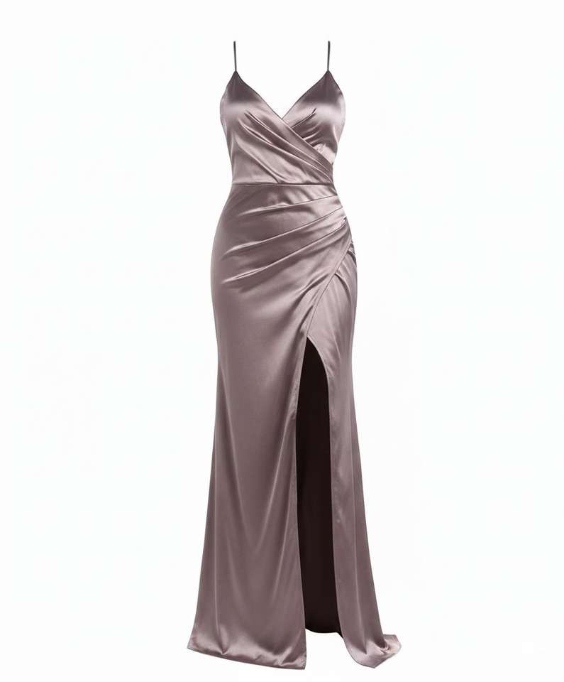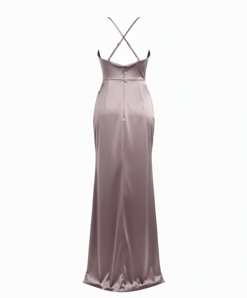 ชุดเดรสผ้าไหมผ้าซาตินหรูหราสำหรับผู้หญิงพร้อมสายสปาเก็ตตี้ละเอียดอ่อนและดีไซน์แบบเปลือยหลัง