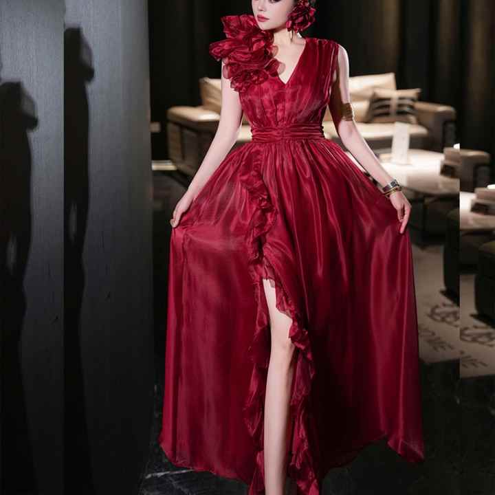 เครื่องประดับ:Draped, ruched, ดอกไม้, ผ่าสูง