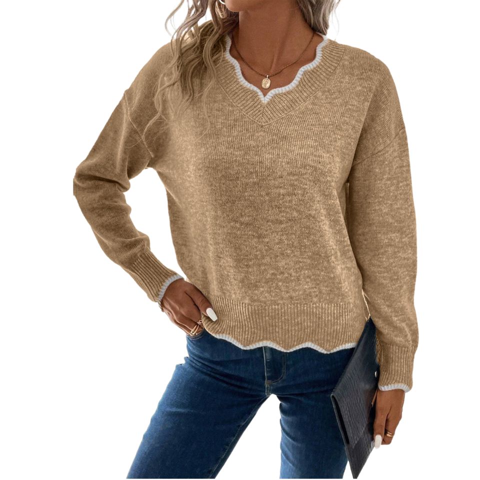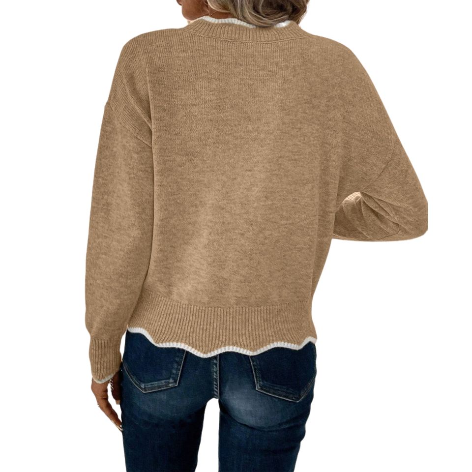 ชื่อสินค้า:เสื้อสเวตเตอร์ถักแขนยาวคอเหลี่ยมติดกระดุม