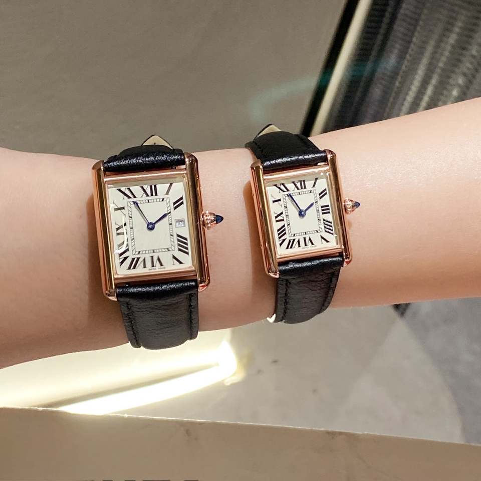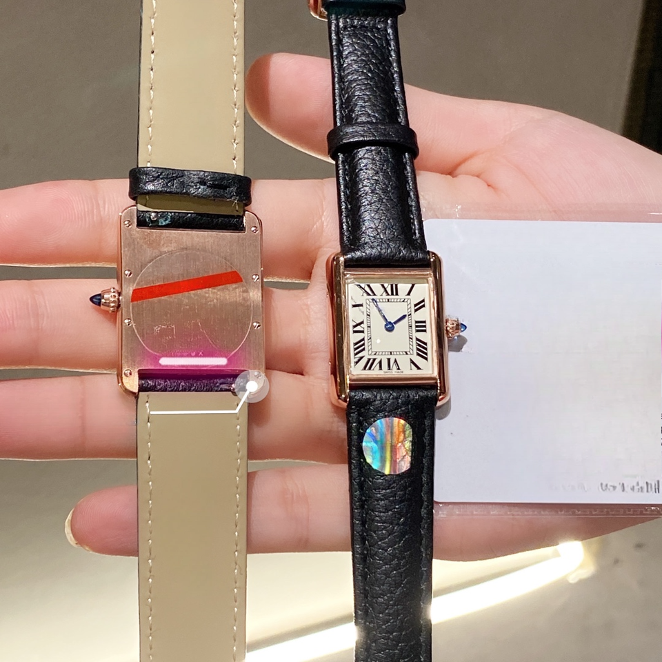 นาฬิกาข้อมือผู้หญิงหน้าปัดสี่เหลี่ยมหรูหราตัวเรือนสีโรสโกลด์สายหนังสีดำตัวเลขโรมันฟังก์ชั่นวันที่นาฬิกาข้อมือหรูหรา