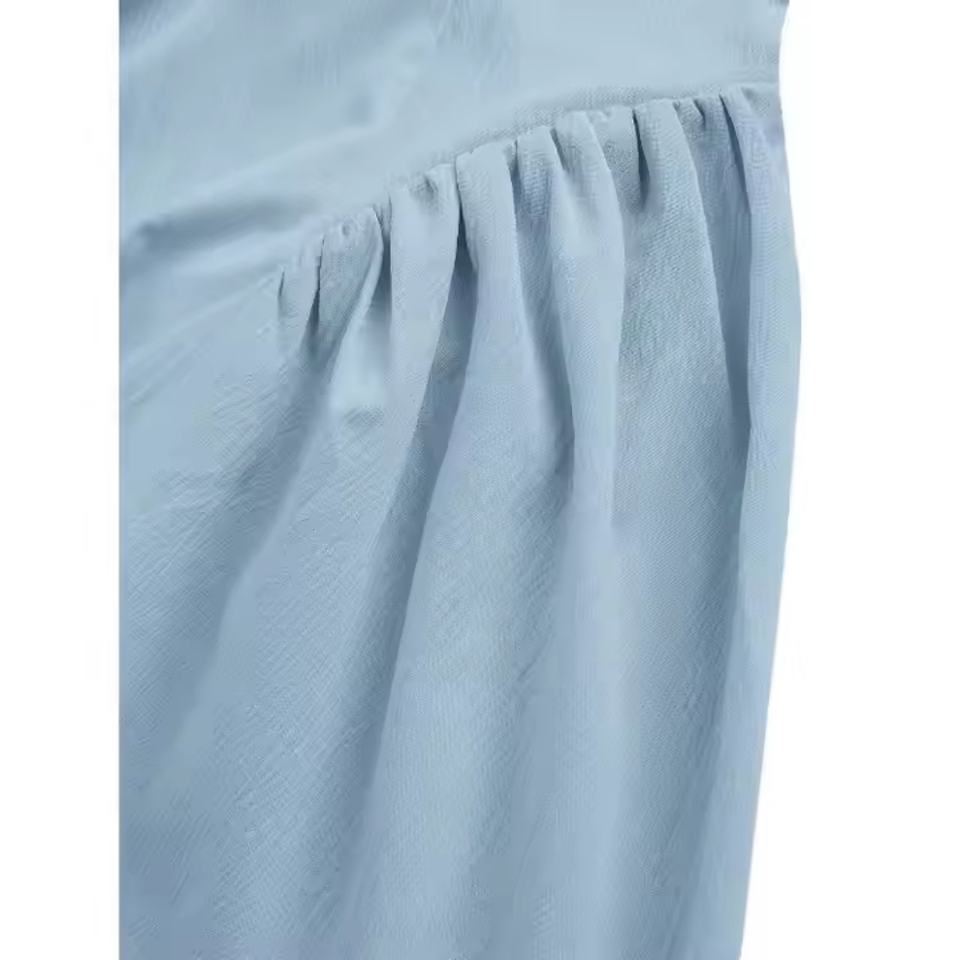 ชุดเดรสฤดูร้อนผู้หญิงสไตล์จีนใหม่ ผ้าลินิน 100% เป็นมิตรกับสิ่งแวดล้อม ทรงยาวเข้ารูป สไตล์ Old Money ลำลอง คอตั้ง สีพื้น