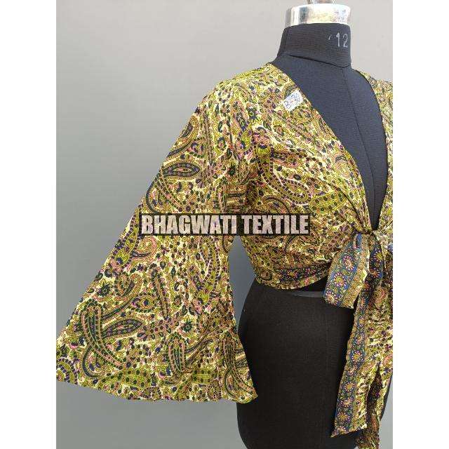 Fashion Element:Vintage, Floral Print, Crop Top, Wrap and Tie