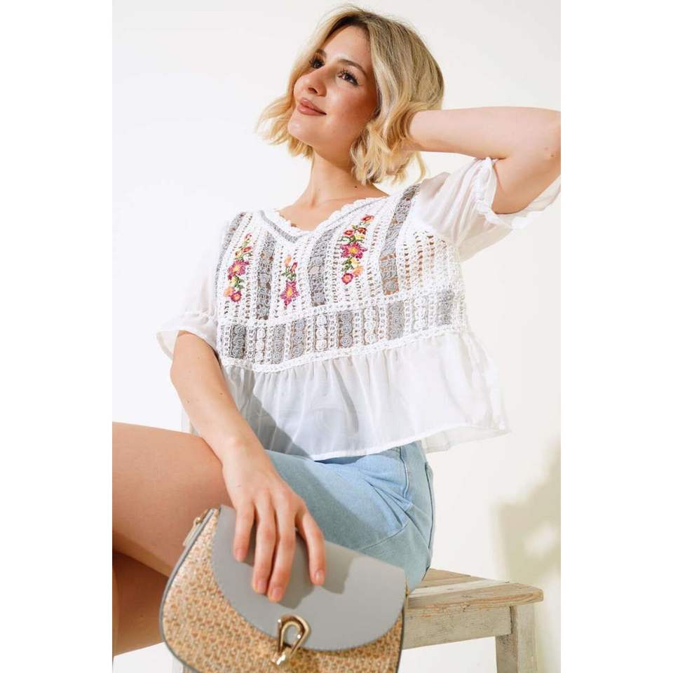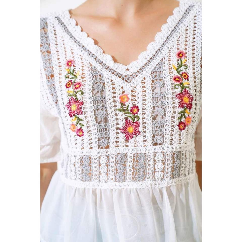 เสื้อชีฟองปักลายดอกไม้สำหรับผู้หญิงผ้าเรยอนสีเทาคอตั้งแต่งระบายยาวแบบตะวันตกสำหรับฤดูใบไม้ผลิฤดูใบไม้ร่วง