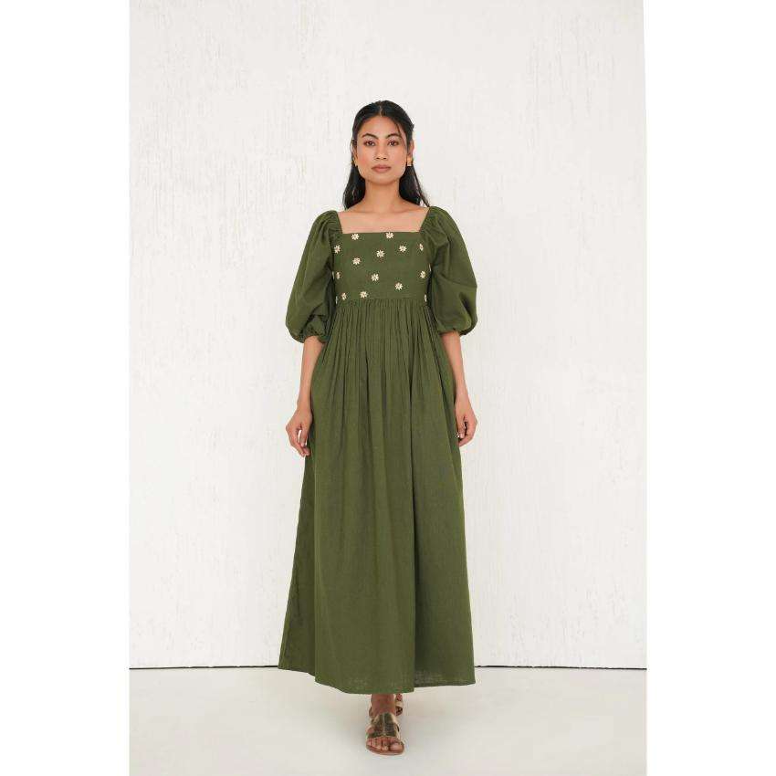 เดรสผ้าฝ้ายลำลองสำหรับฤดูร้อน แขนสั้น คอวี ยาวคลุมเท้า ลายปัก ลายดอกไม้ สไตล์สตรีทแวร์ เป็นมิตรกับสิ่งแวดล้อม