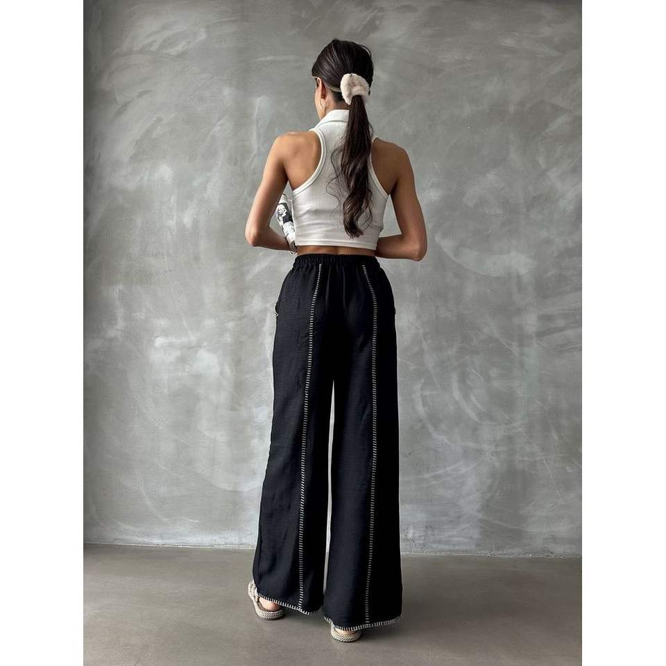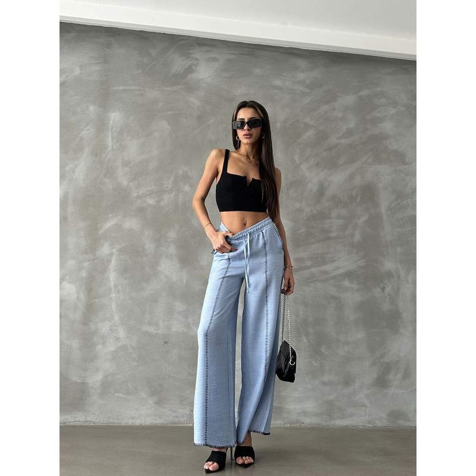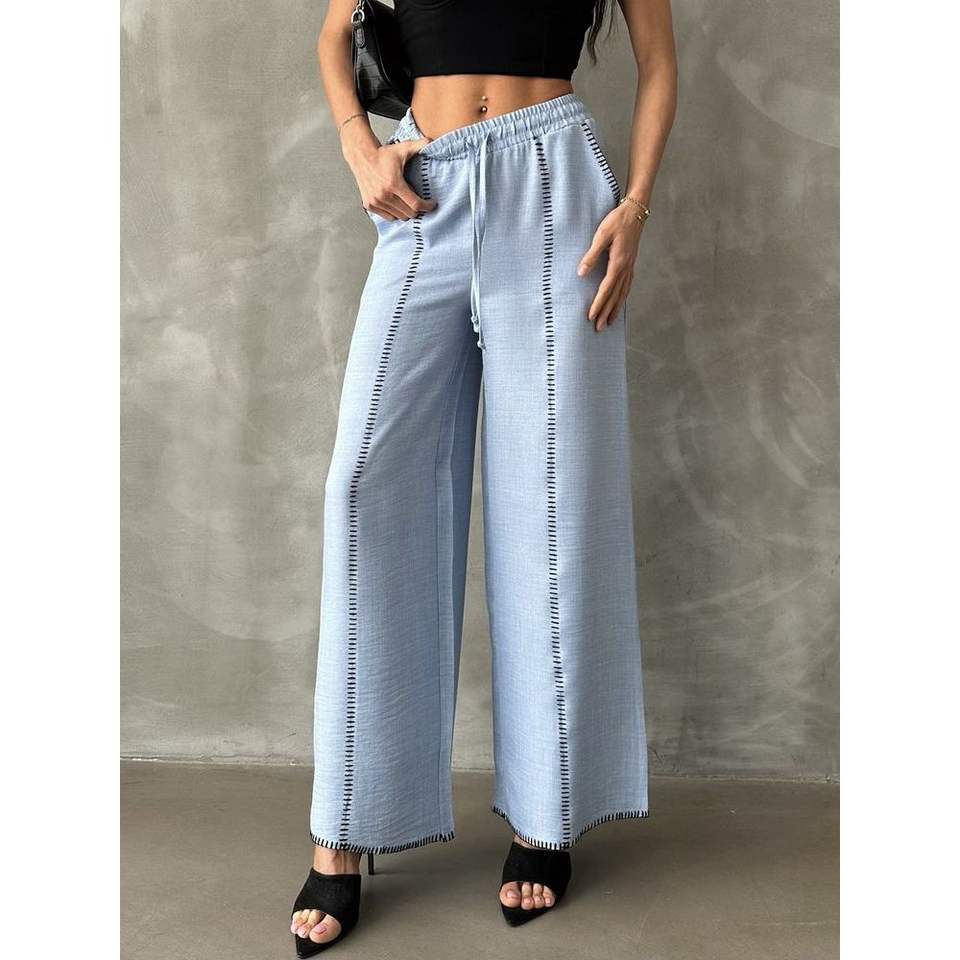 กางเกงขายาวผ้าลินินปักลายสำหรับผู้หญิง ขายส่ง