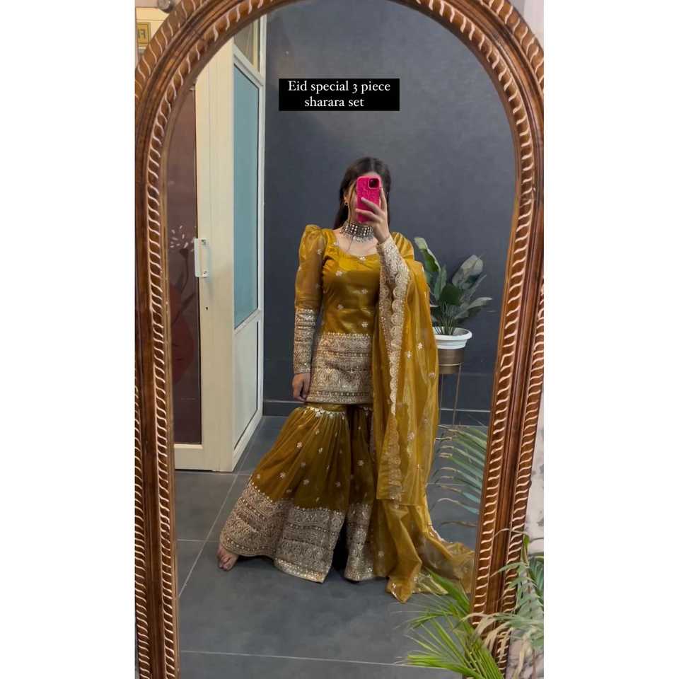 ชุดเสื้อปักลายประดับเลื่อมสำหรับผู้หญิง พร้อมกางเกงชาราราและผ้าคลุมไหล่ สำหรับงานปาร์ตี้