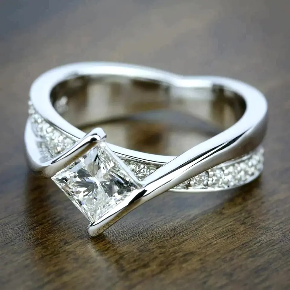 แหวนหมั้นผู้หญิง เงินแท้ 925 ชุบโรเดียม ประดับเพชรโมอิสซาไนต์แท้ทรงกลมเจียระไนบริลเลียนต์ 2 กะรัต แบบหนามเตย