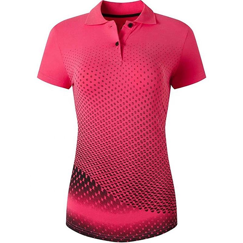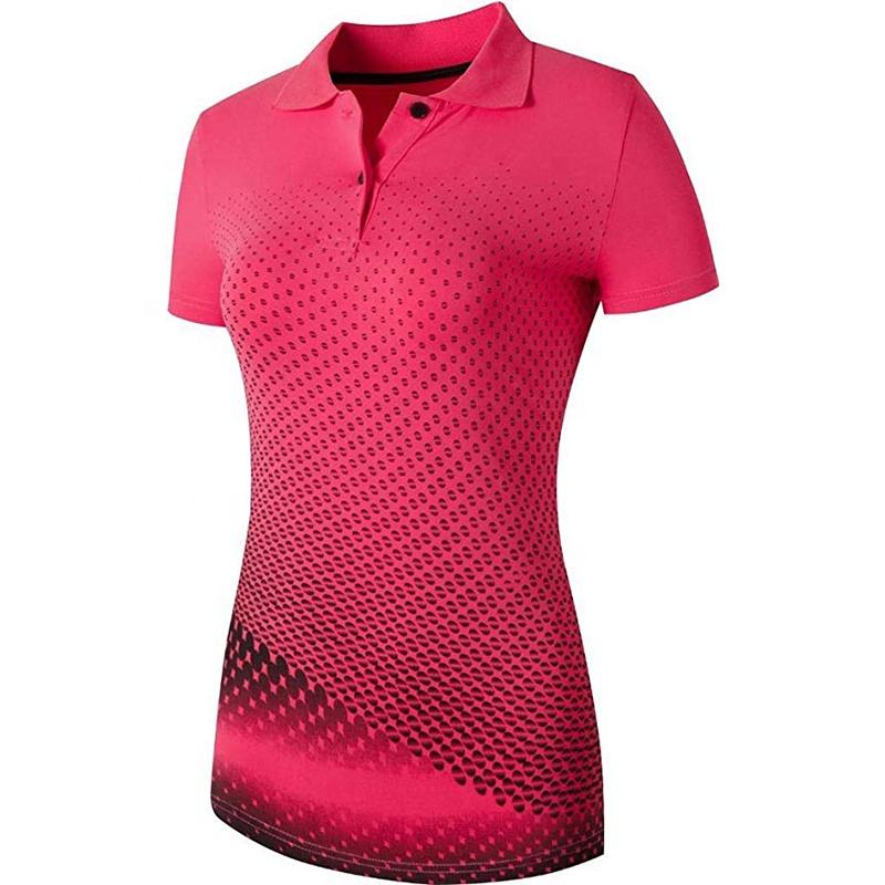 เสื้อโปโลขี่ม้าสำหรับผู้หญิง ผ้าโพลีเอสเตอร์ พิมพ์ลายแบบซับลิเมชั่น สีและโลโก้ปรับแต่งได้ ขนาดสั่งทำ
