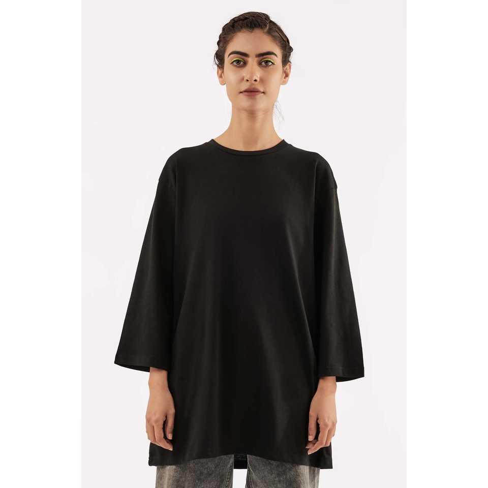เสื้อยืดขนาดใหญ่ที่จำเป็นของผู้หญิงสีดำ