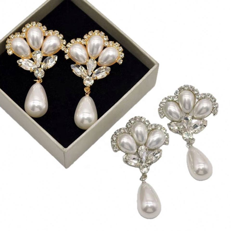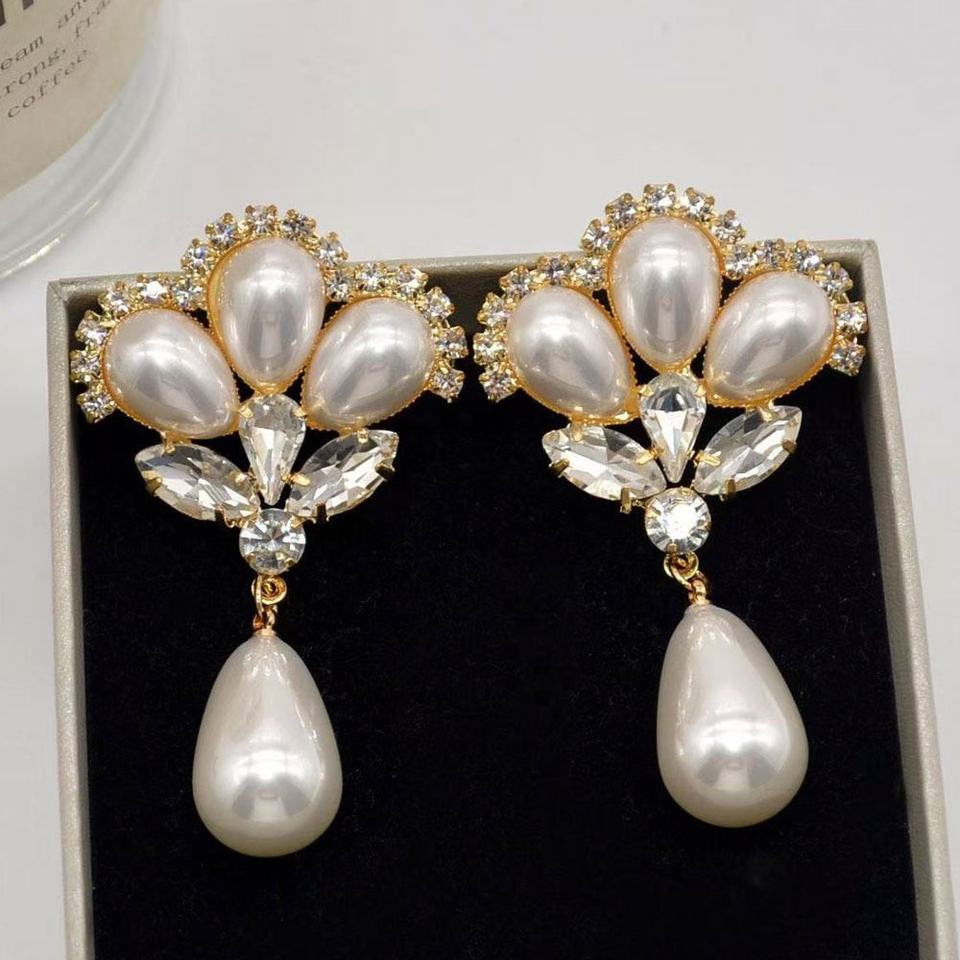 ต่างหูห้อยประดับมุกและหินธรรมชาติ ดีไซน์หรูหรา สไตล์ยุโรปอเมริกันย้อนยุค ประดับด้วยการชุบโลหะบนสแตนเลส สำหรับผู้หญิง
