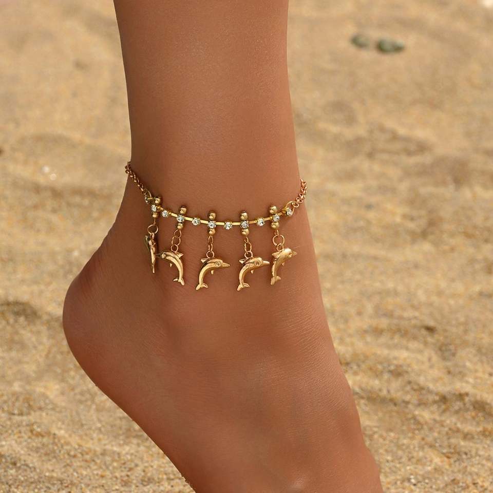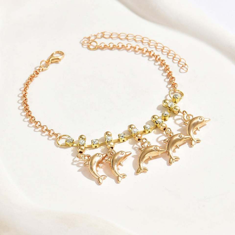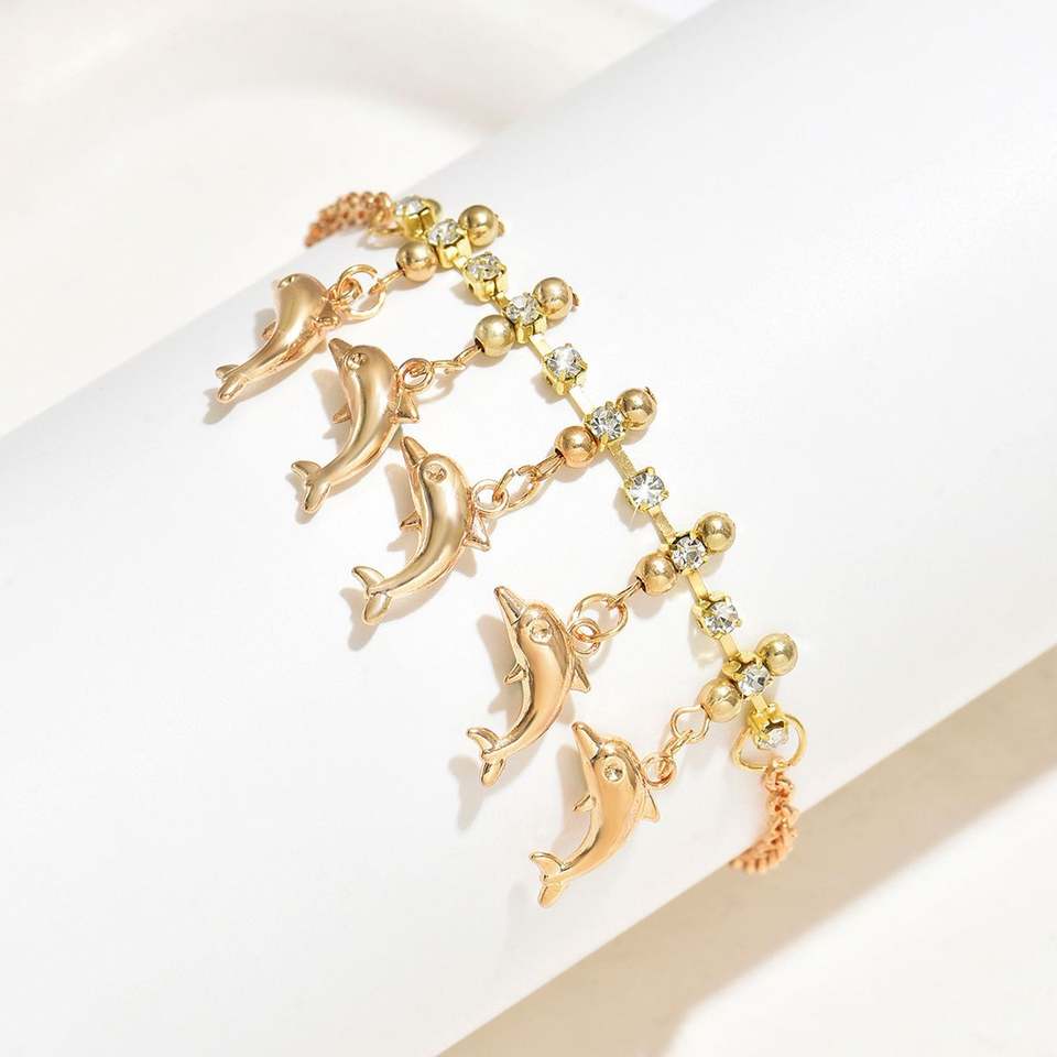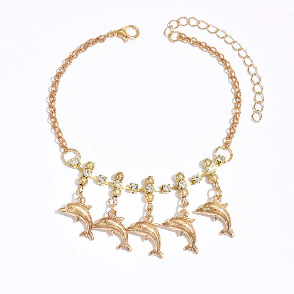 สร้อยข้อเท้าโลหะสไตล์ยุโรปอเมริกันสำหรับผู้หญิง ประดับจี้รูปปลาโลมาและเปลือกหอย ดีไซน์หรูหรา สไตล์ฮิปฮอป ผลิตจากโลหะผสม ประเทศจีน