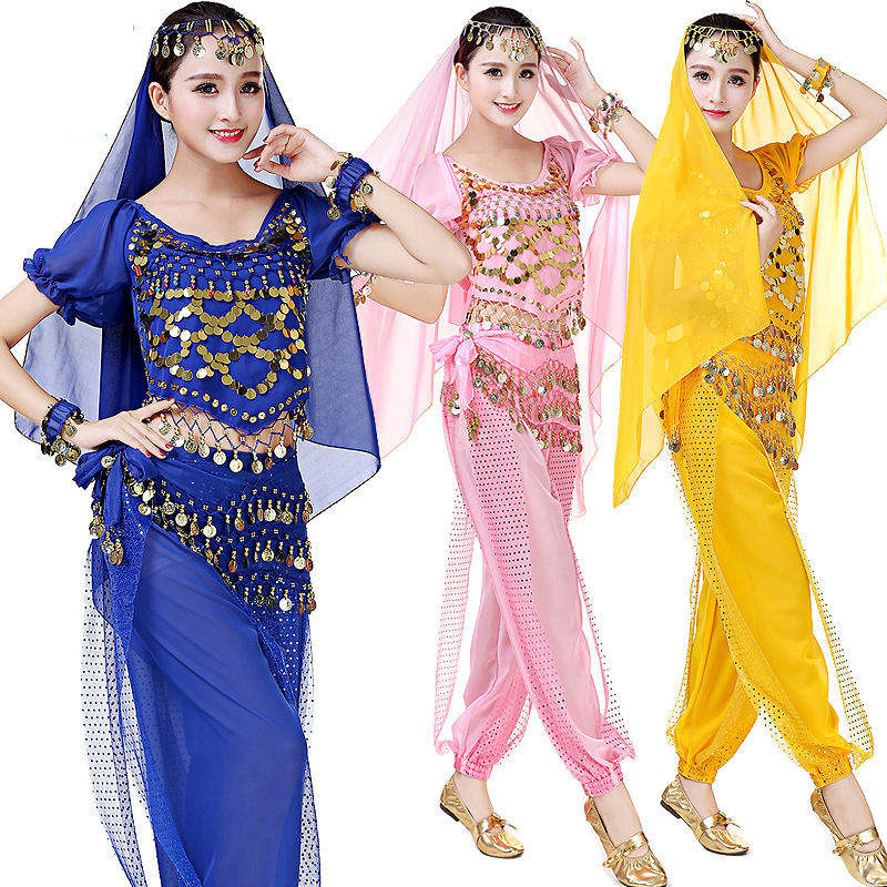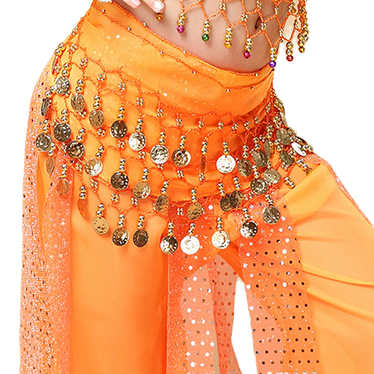 ผ้าพันสะโพกสำหรับเต้นระบำหน้าท้องเซ็กซี่แปลกใหม่สำหรับผู้หญิงกระโปรงนักเต้นแบบไทย/อินเดีย/อาหรับประดับเลื่อมมีพู่สำหรับแสดงชุดเต้น
