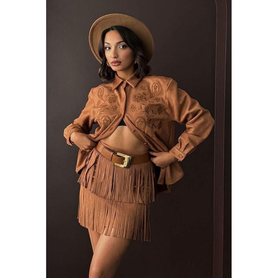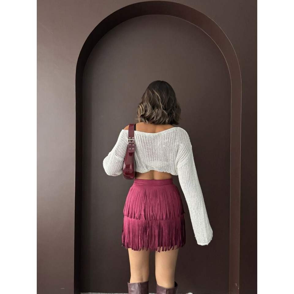 กระโปรงหนังกลับสำหรับดำน้ำรุ่น F 2030 ประดับพู่สำหรับผู้หญิง