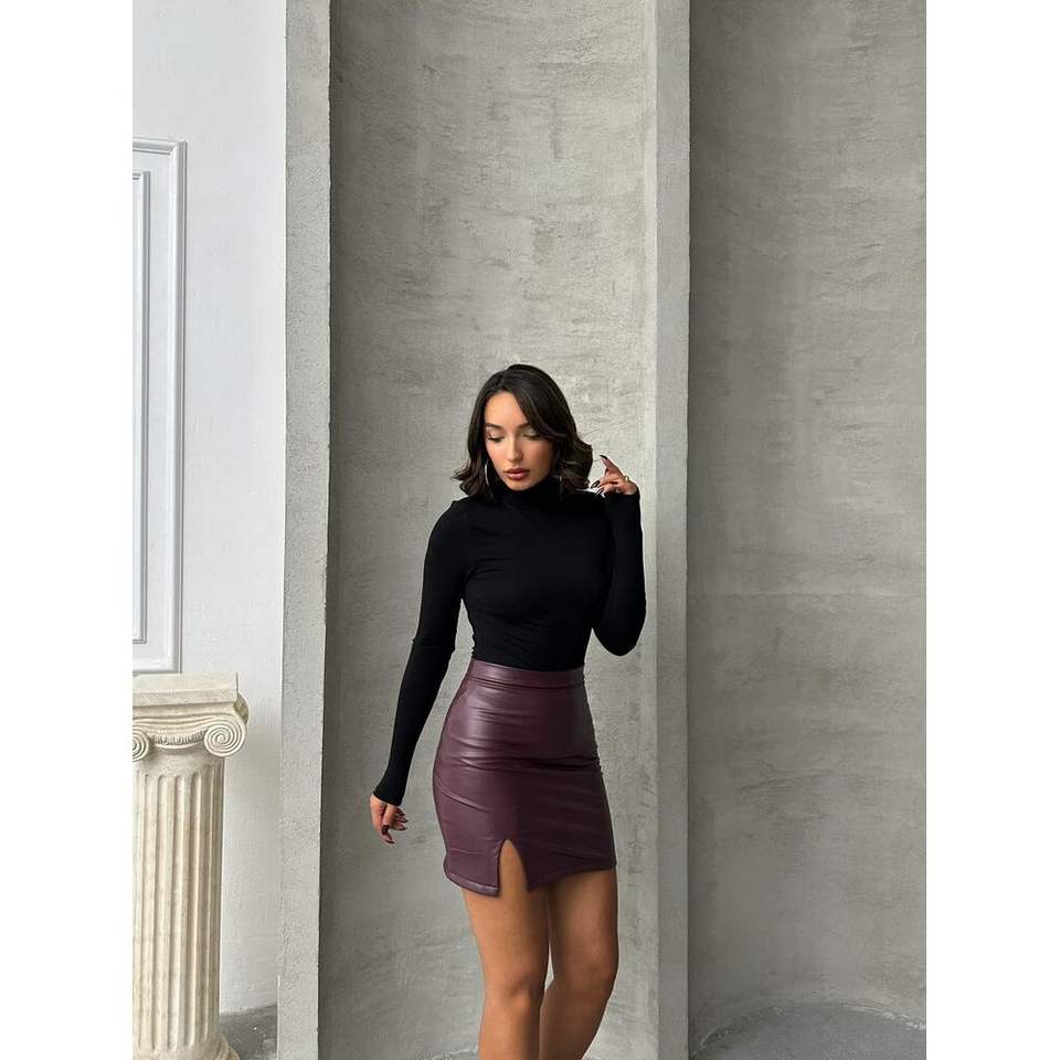 Women's F Knee-Length Leather Skirt Wholesale Product