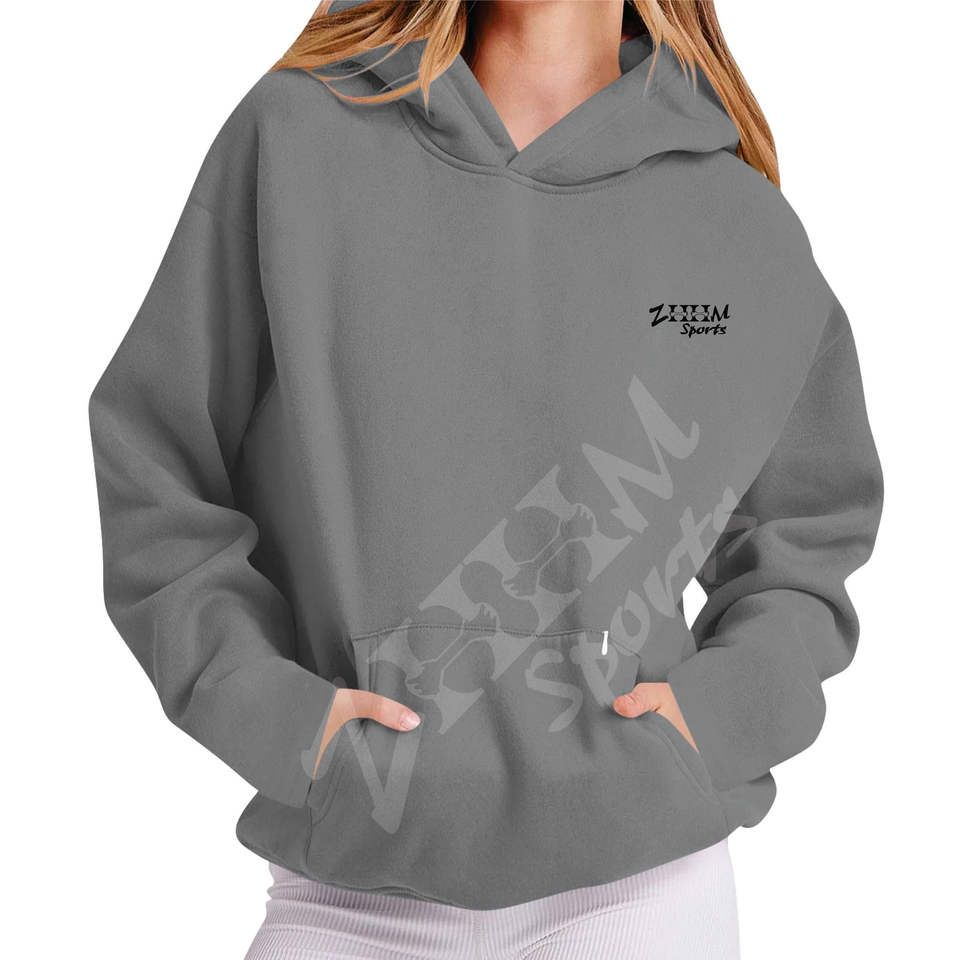 เสื้อแขนยาวสวมหัวลำลองสำหรับผู้หญิงเสื้อกันหนาวมีฮู้ดโอเวอร์ไซส์มีโลโก้แบบซ่อนกระเป๋าด้านหน้าพิมพ์สีทึบมีซับในสำหรับฤดูใบไม้ร่วง/ฤดูหนาว