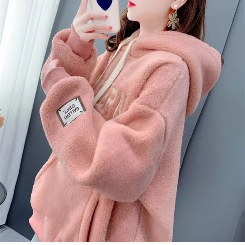 เสื้อฮู้ดกีฬาผู้หญิงสำหรับฤดูใบไม้ร่วงและฤดูหนาว ลายเรียบ แขนสั้น สวมใส่สบาย อุ่นสบาย ชุดเดียว ผ้าแคนวาส 100% ผ้าฝ้าย