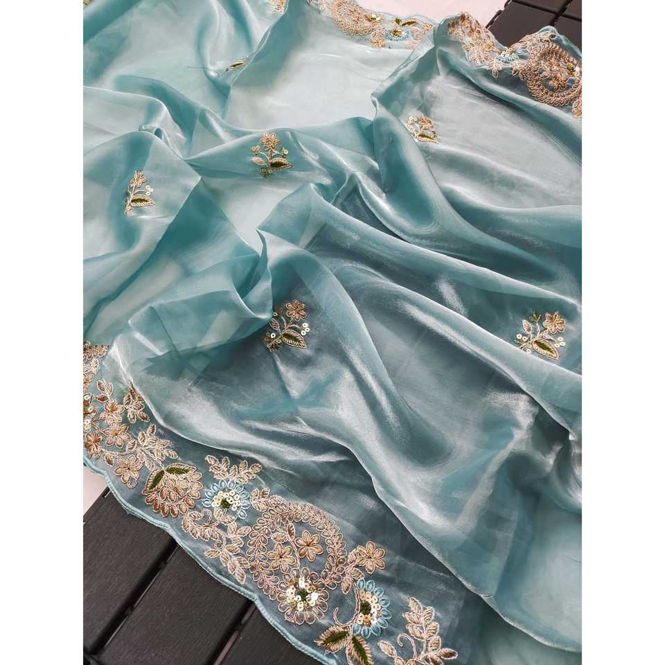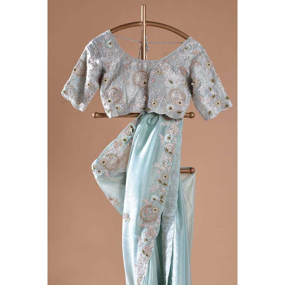 ชุดส่าหรีแนวแฟนซีสำหรับผู้หญิงมีชุดงานปักเลื่อมปักลายหลายดอก