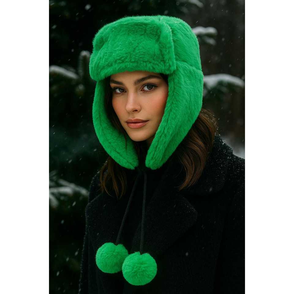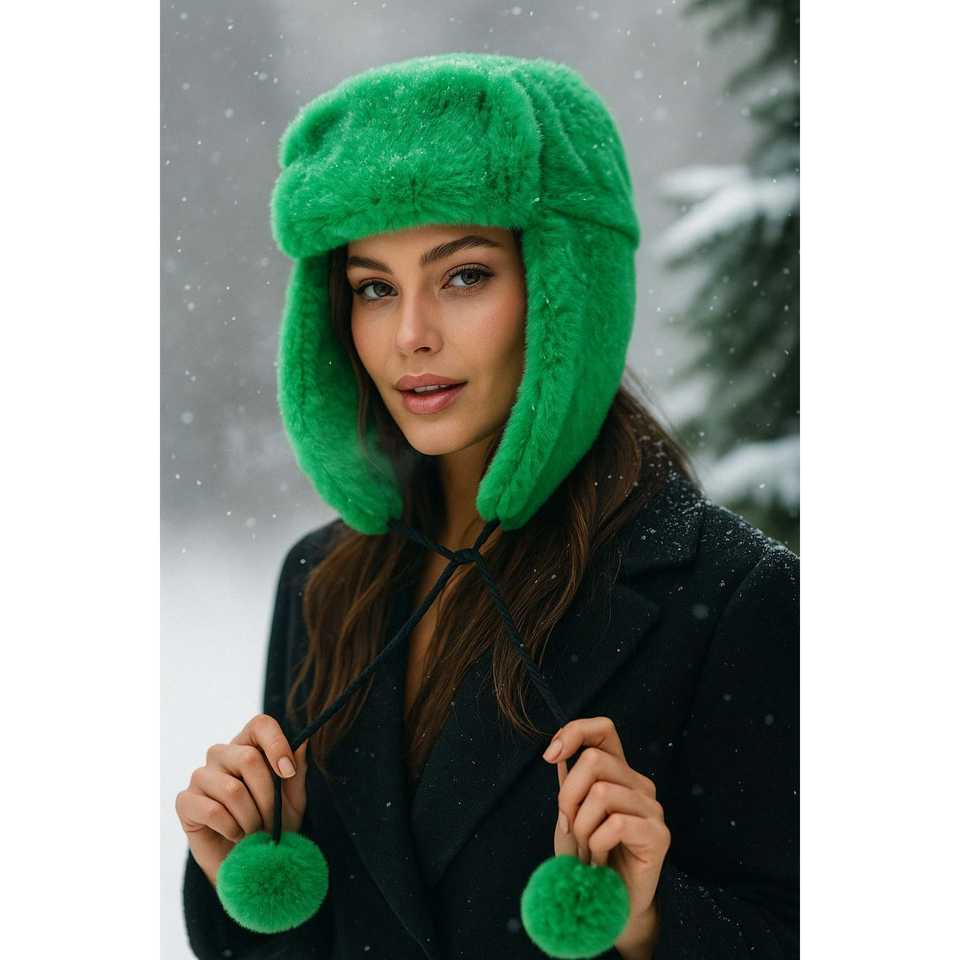 หมวกบีนนี่ขนปุยสีเบจสำหรับผู้หญิง พร้อมพู่ห้อยและที่ปิดหู เหมาะสำหรับปั่นจักรยาน เล่นสกี กีฬากลางแจ้ง ตกปลา ฤดูหนาว ใส่ลำลอง/งานปาร์ตี้