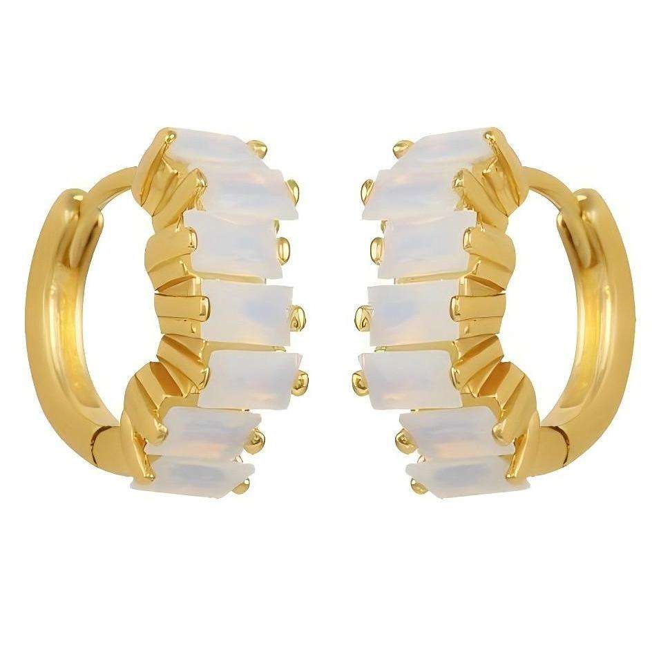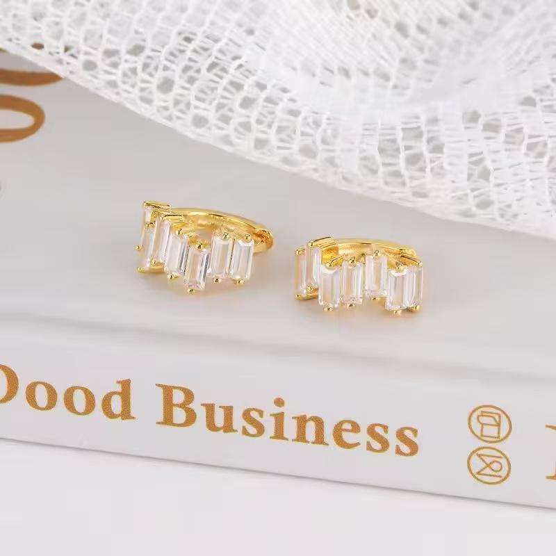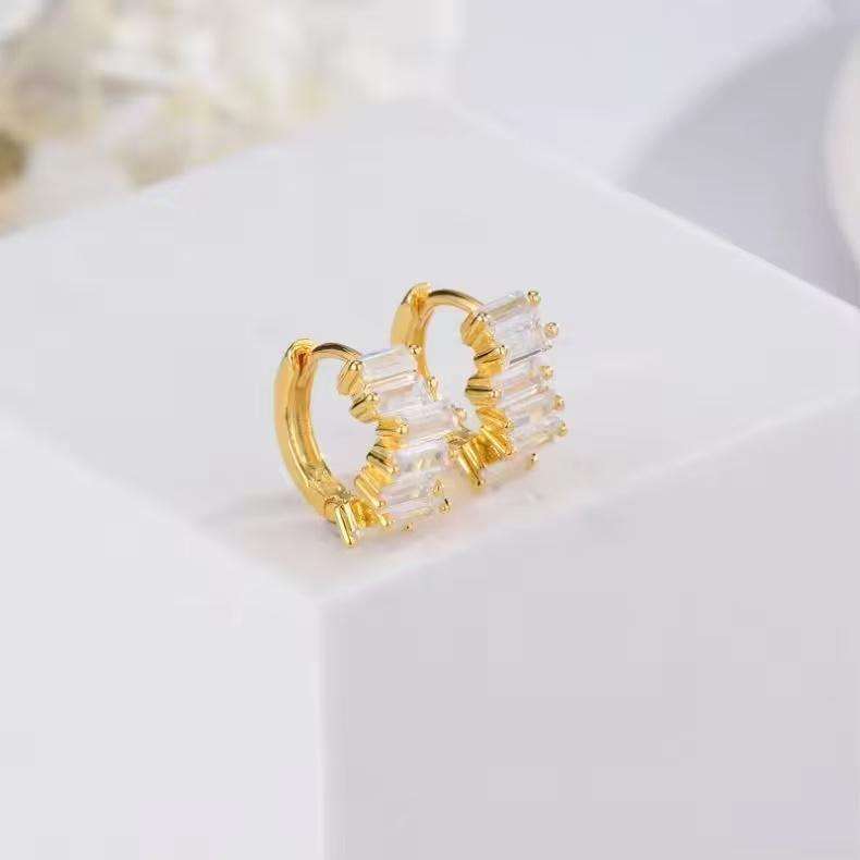ต่างหูห่วงทองเหลืองและพลอยเทียมทรงแฟชั่นสำหรับผู้หญิงดีไซน์เพทายรูปทรงเรขาคณิตสุดเก๋สำหรับทำงานและสำนักงาน
