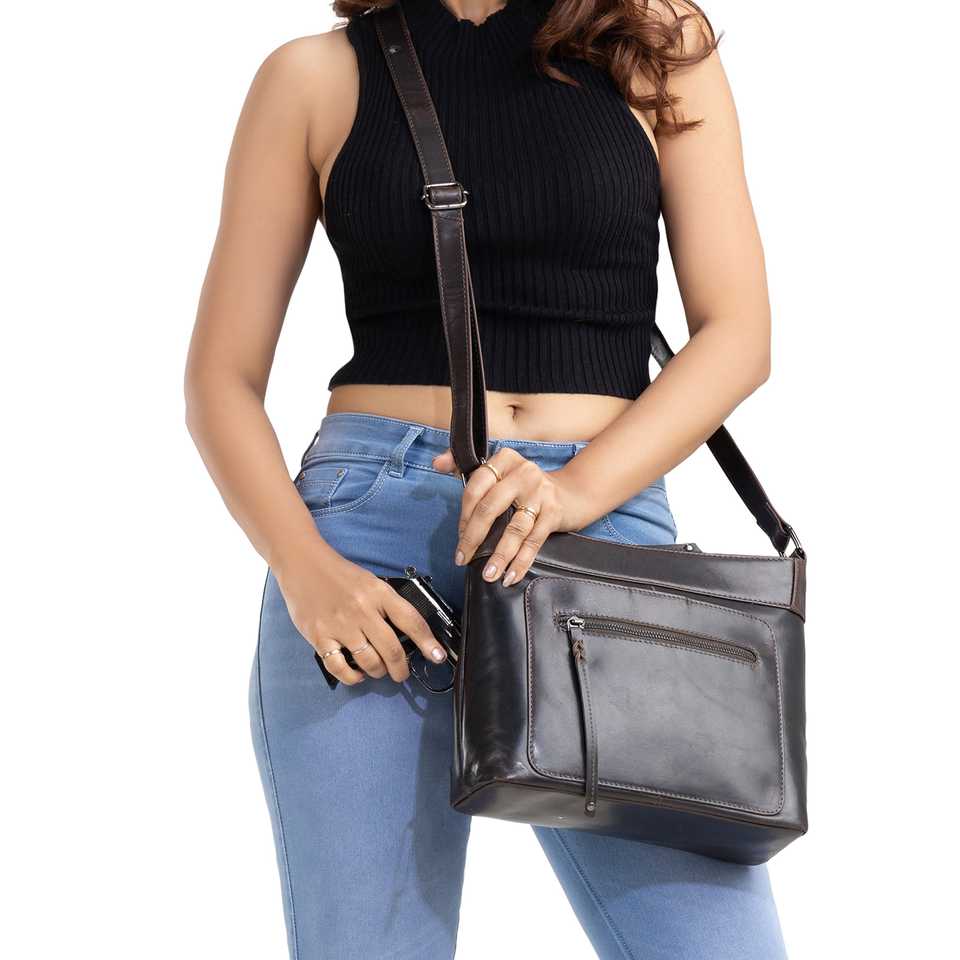 Women's Fashion Concealed Lock and Key Crossbody Bag Custom Concealed Carry Purse with Zipper Closure Solid Color Customizable