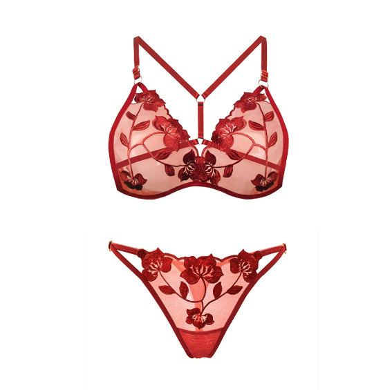 ชุดบราเซ็กซี่แบบไม่ใช้สายสำหรับผู้หญิงชุดชั้นในตาข่ายปักลายสามเหลี่ยมแฟชั่นฝรั่งเศส