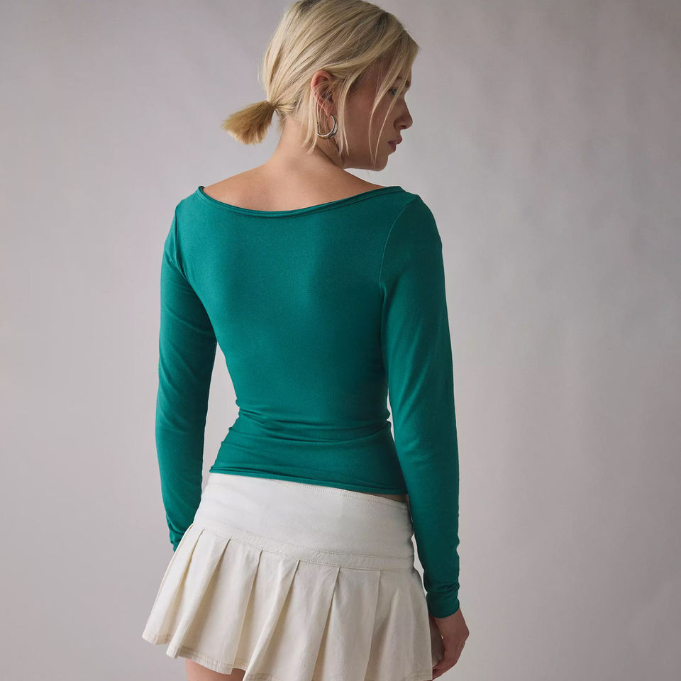 เสื้อแฟชั่นผู้หญิงทรงเฮนลีย์ ผ้าฝ้าย 100% แขนยาว กระดุมหน้า ทรงพอดีตัว คอวี แบบสั่งทำ เสื้อผ้าบูติก สตรีทแวร์ ขายส่ง