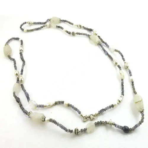 สร้อยคอผู้หญิงประดับพลอยไอโอไลต์ไอโรดีนและไข่มุกแบบเลเยอร์