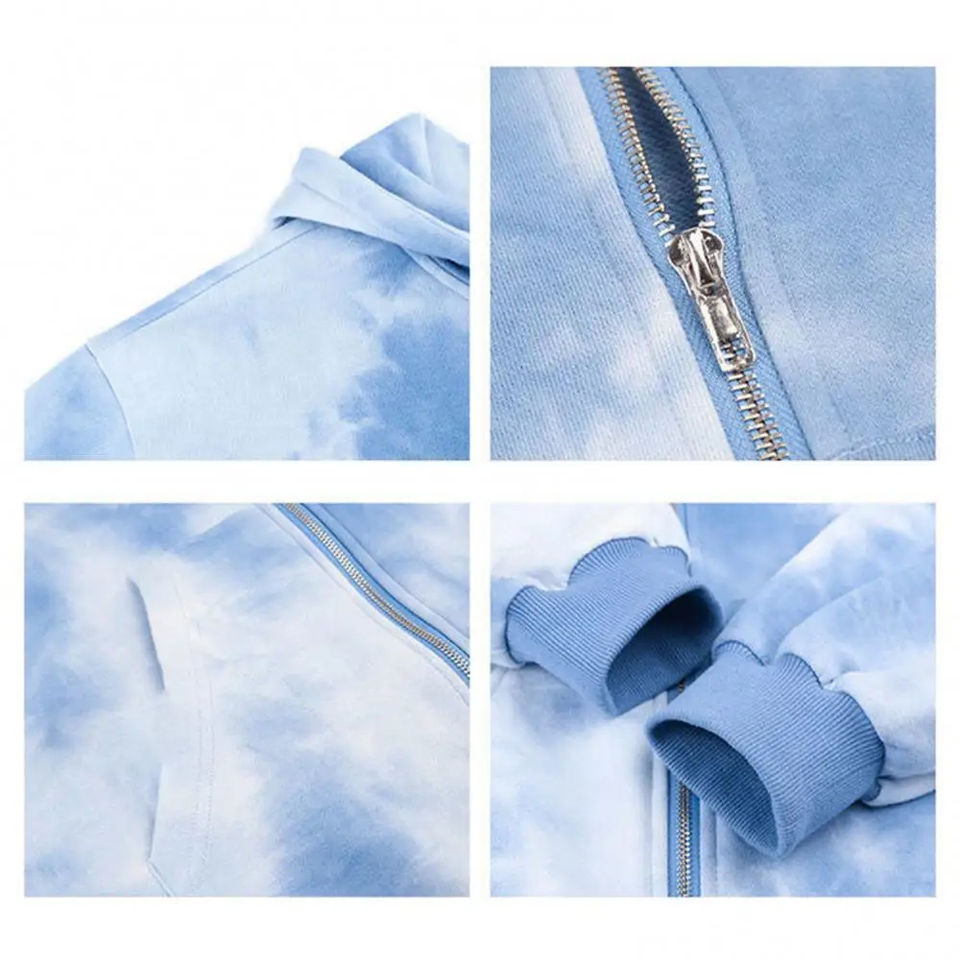 ชื่อผลิตภัณฑ์:เสื้อมีฮู้ดมีซิปมัดย้อมสำหรับผู้หญิง