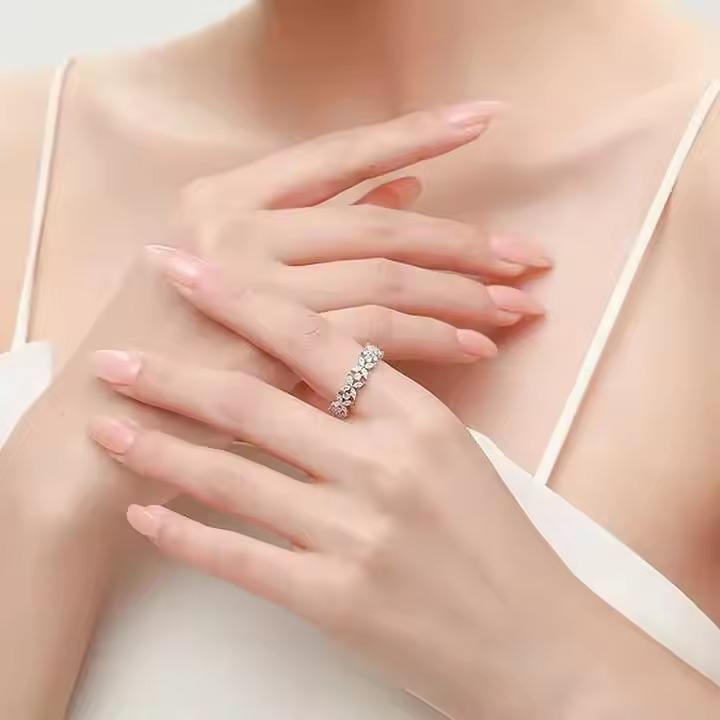 แหวนเพชรโมอิสแฟชั่นสำหรับผู้หญิง925เครื่องประดับเงินสเตอร์ลิงพร้อมใบโคลเวอร์สี่ใบการออกแบบสำหรับปาร์ตี้