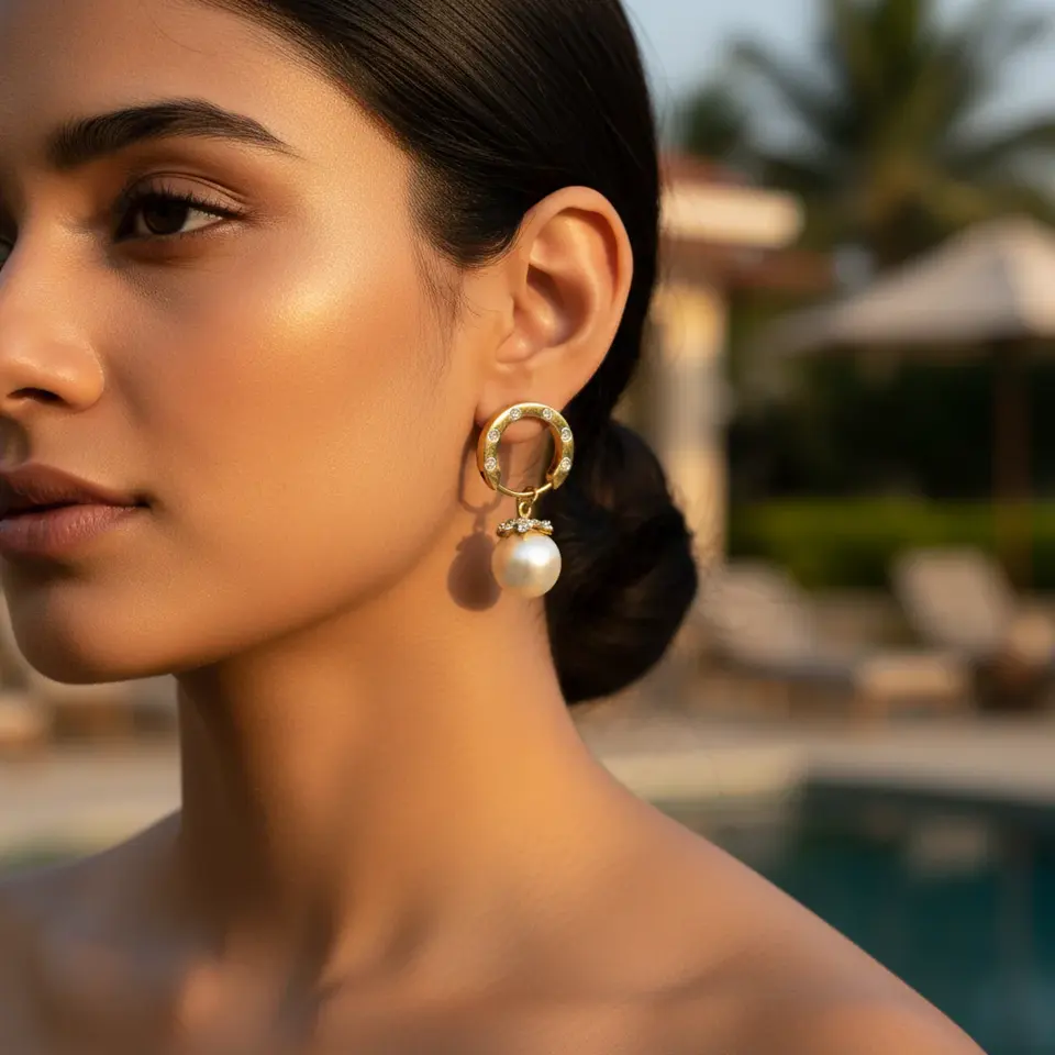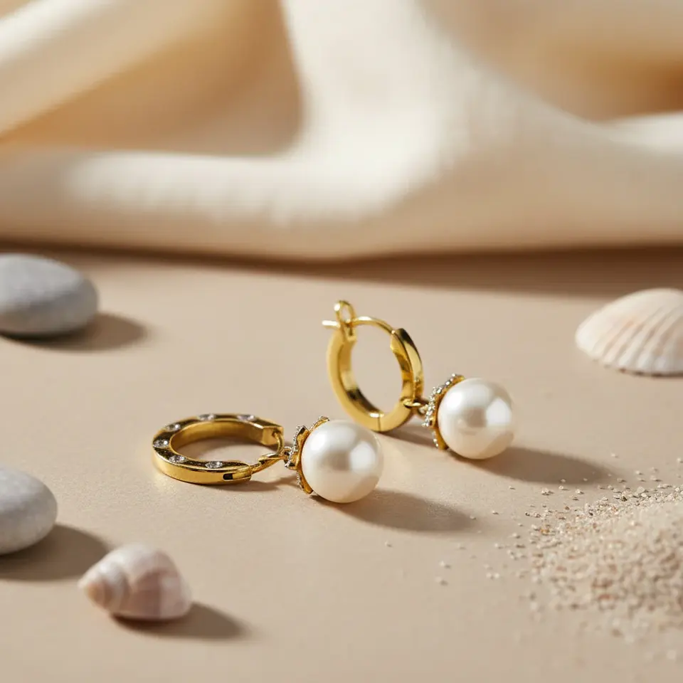ต่างหูห่วงมุกแฟชั่นสำหรับผู้หญิง ชุบทอง