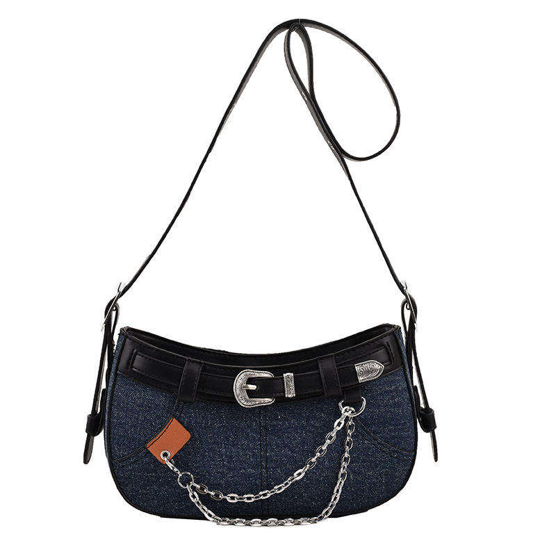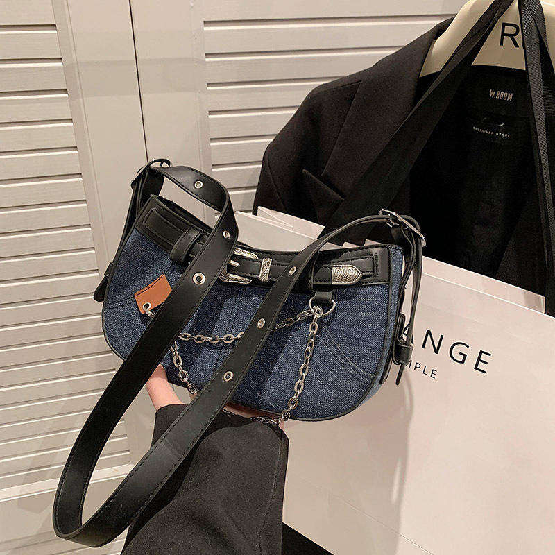 กระเป๋าสะพายไหล่แฟชั่นสตรี สไตล์สาวเท่และเผ็ดร้อน กระเป๋าสะพายไหล่ประดับโซ่ Pu