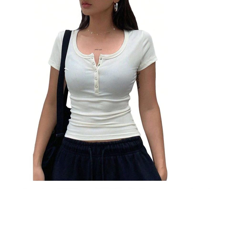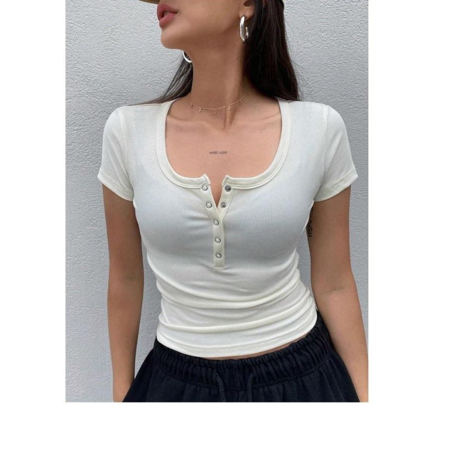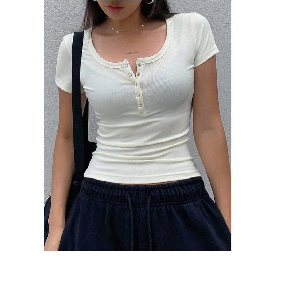 เสื้อยืดแฟชั่นสำหรับผู้หญิงเสื้อยืดเซ็กซี่สำหรับผู้หญิงติดกระดุมแขนสั้นพิมพ์โลโก้ได้ตามต้องการฤดูร้อน