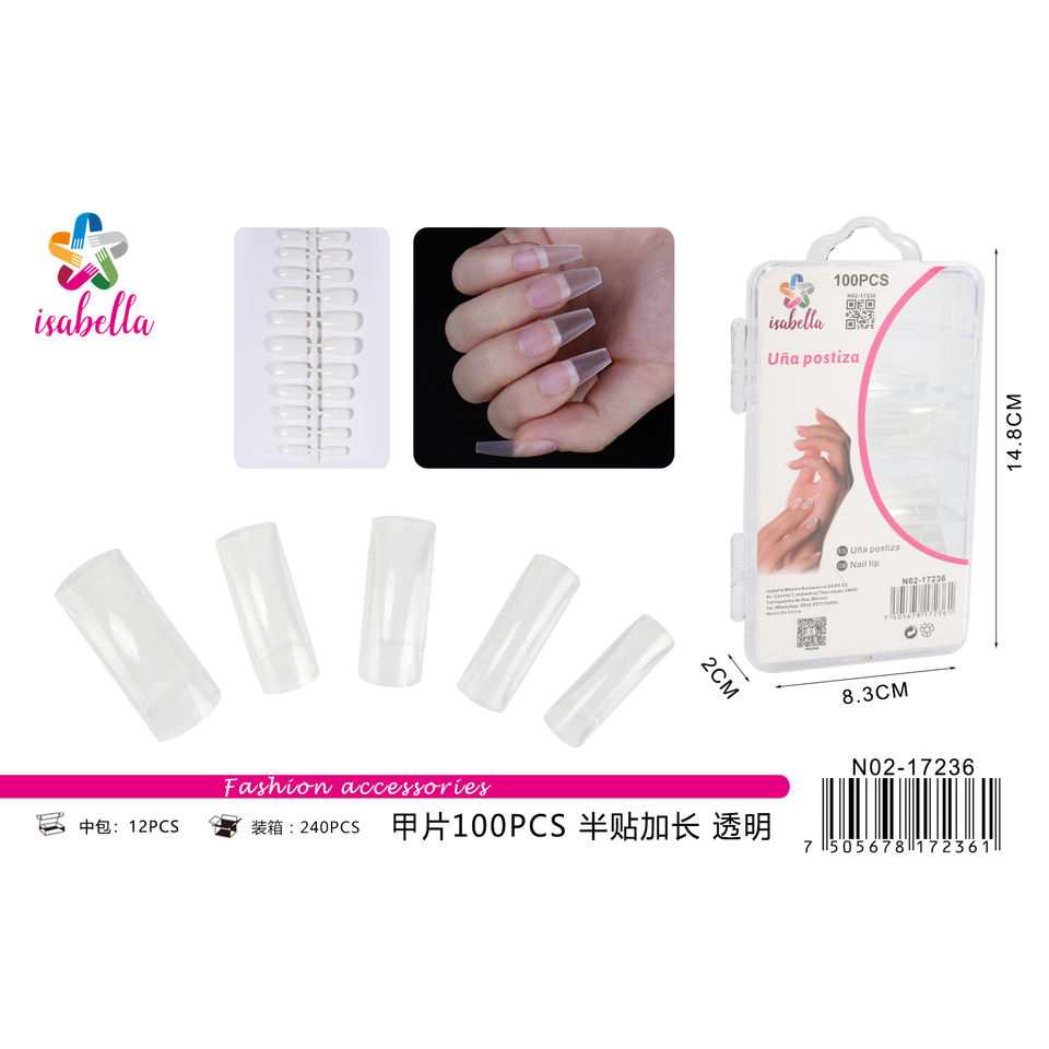 Women's Fashion Trendy Clear Long Half-Cover False Nails 100-Piece Stylish Elegant Acrylic Manicure Accessory N02-17236