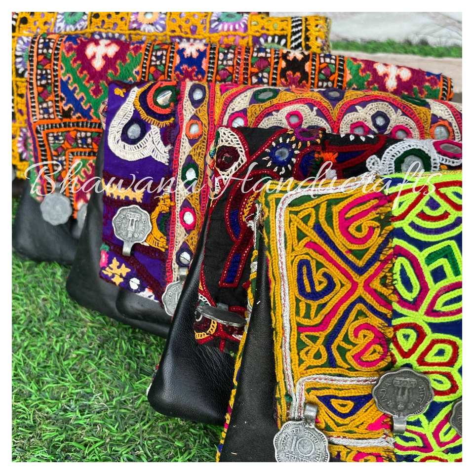 กระเป๋าคลัทช์หนังแฟชั่นผู้หญิงสไตล์บันจาร่ากระเป๋าใส่เหรียญฮิปปี้ปักลายสไตล์โบฮีเมียน
