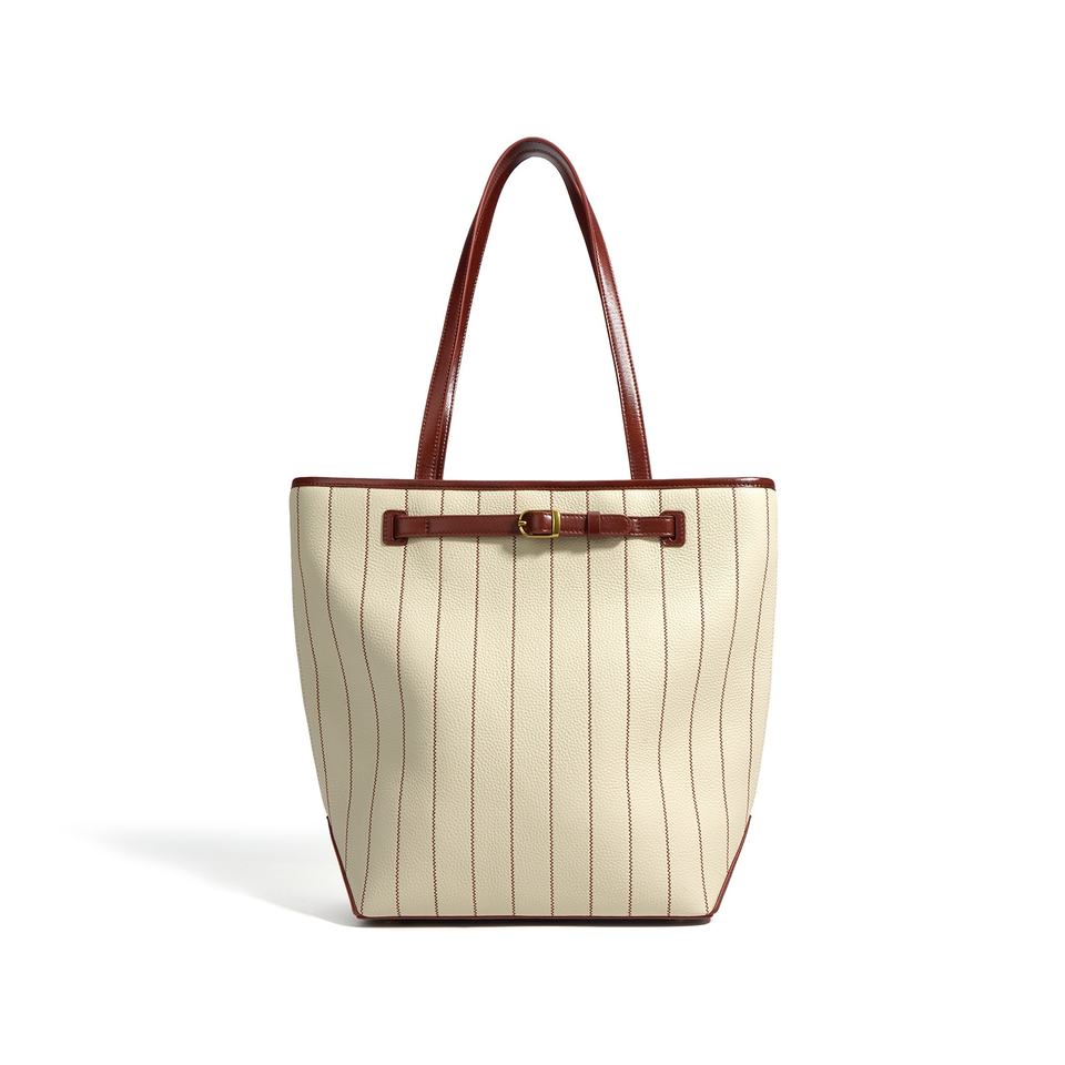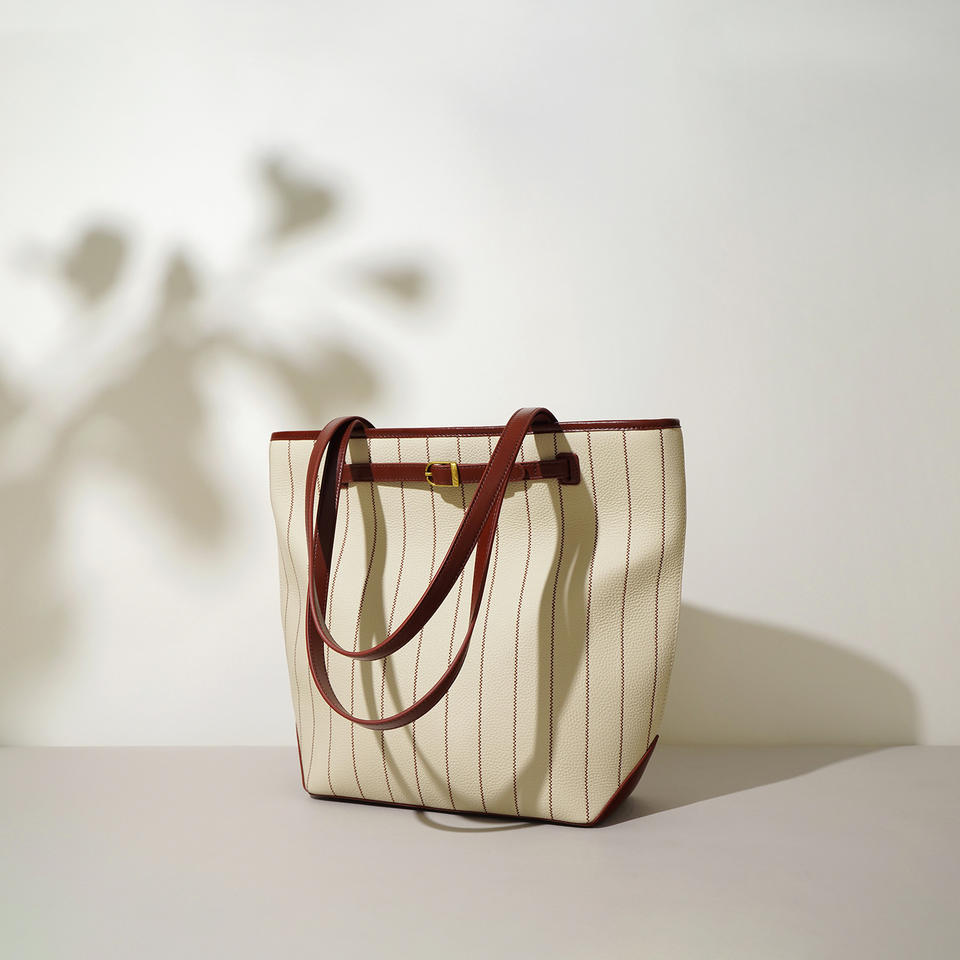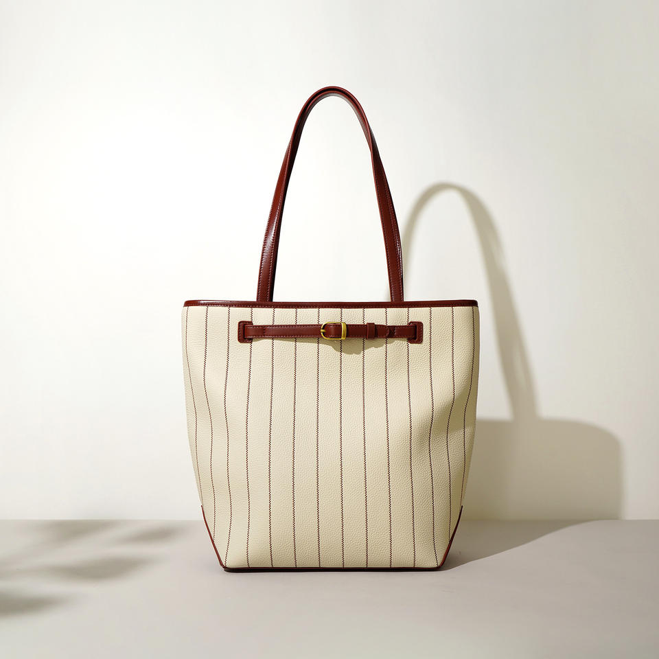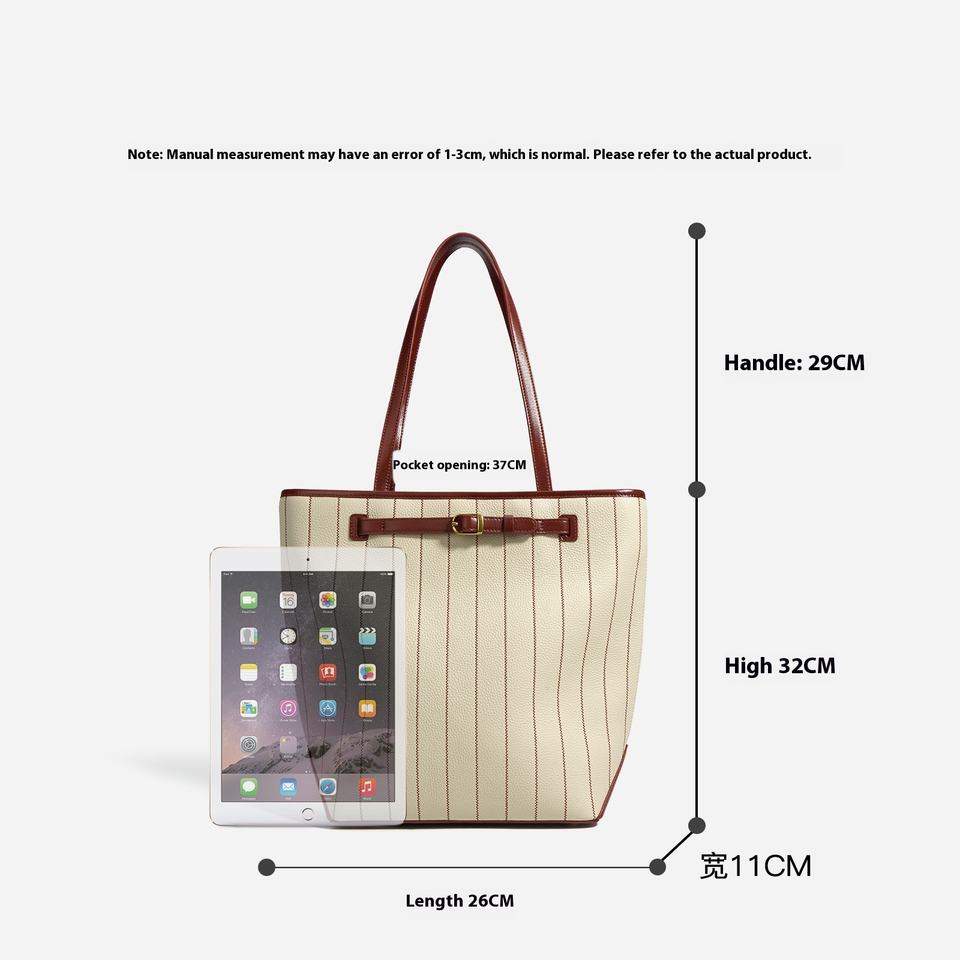 กระเป๋าโท้ทหนังแท้สไตล์คนขี้เกียจทันสมัยสำหรับผู้หญิงที่สามารถปรับความจุได้และดีไซน์เปิดฝาได้แบบเปิดปิด