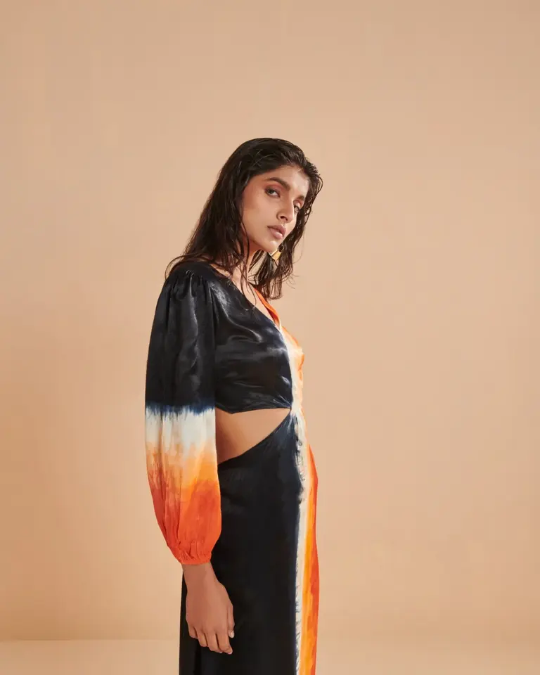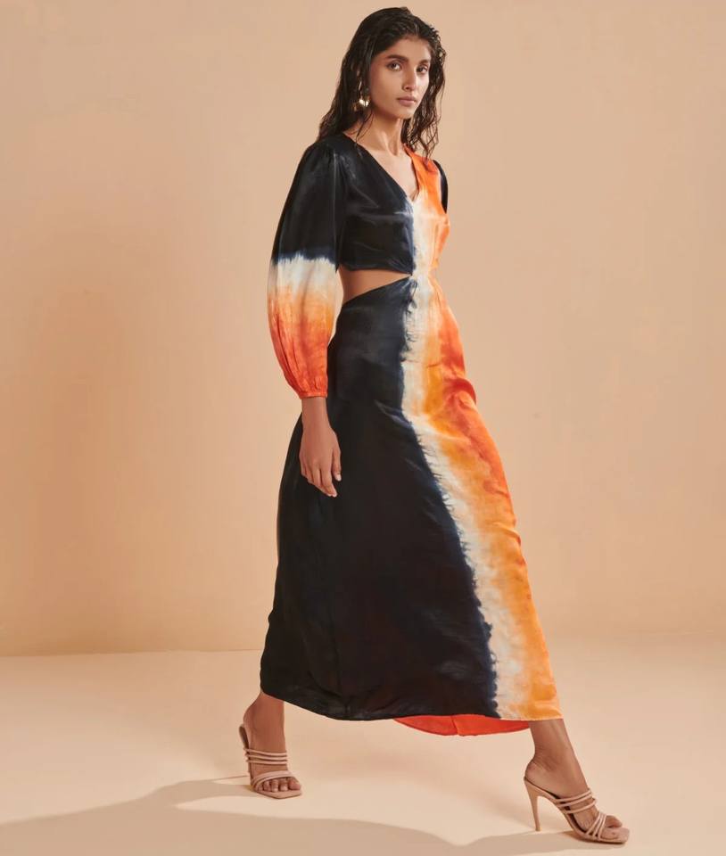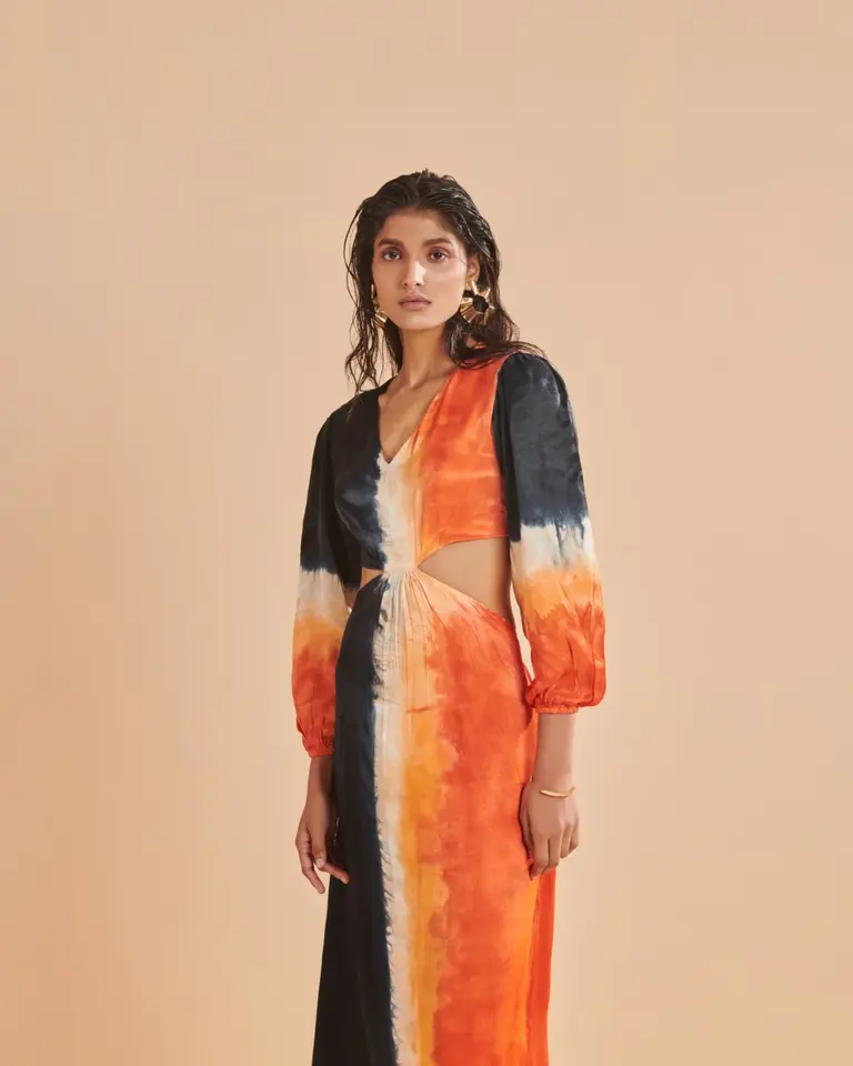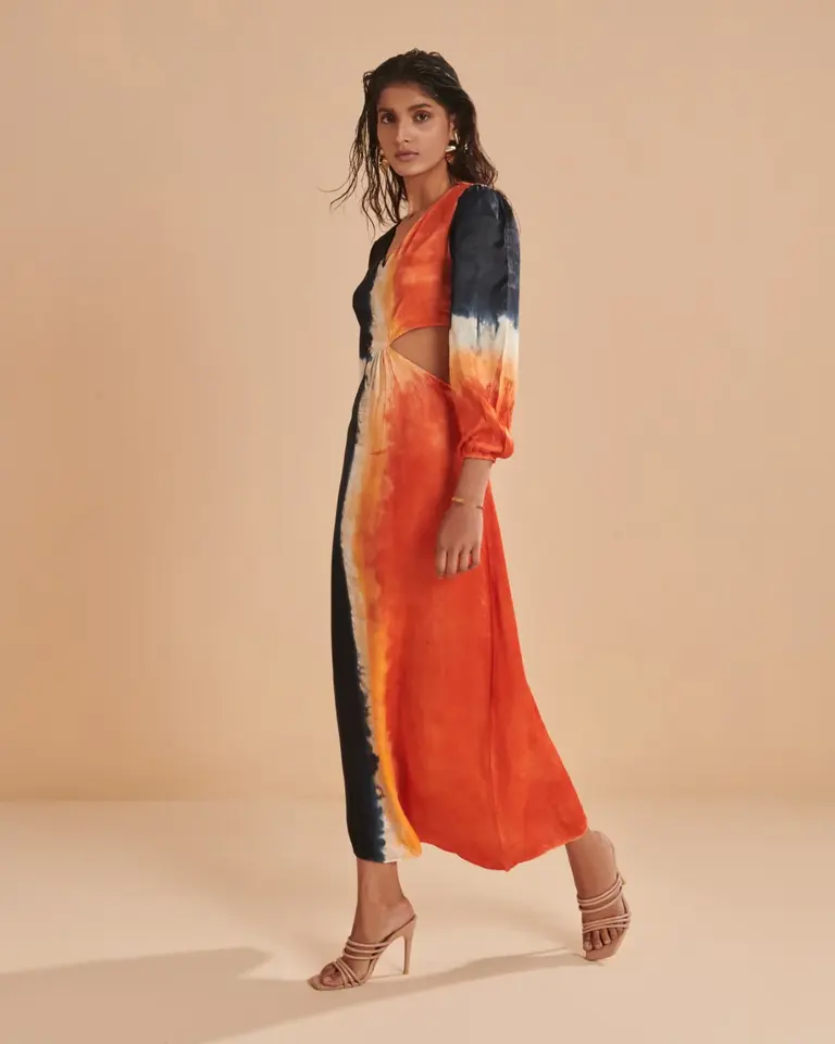 Women's Fashionable Long Sleeve Tie-Dye Dress Effortless Bohemian Rayon for Summer Beach or Resort Wear Crop Top Long Dress