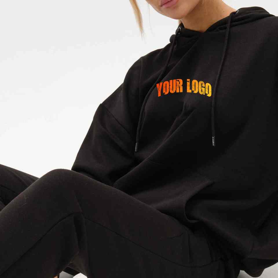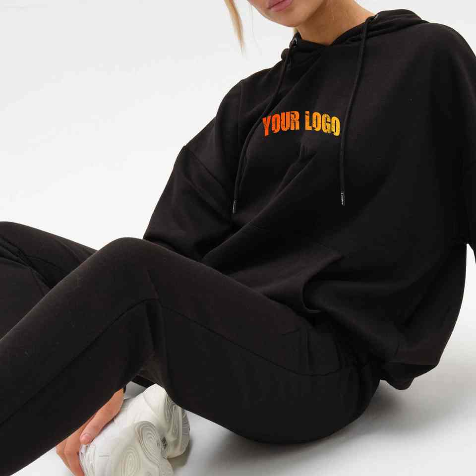 ชุดวอร์มแฟชั่นสีดำโอเวอร์ไซส์ของผู้หญิงชุดวอร์มสั้นผ้าโพลีเอสเตอร์/ ผ้าฝ้ายระบายอากาศได้ดีน้ำหนักเบา
