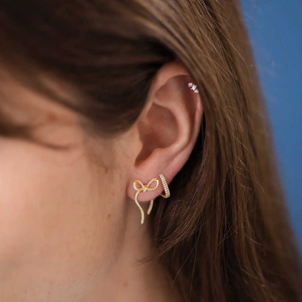 ต่างหูเม็ดกลมสไตล์โบว์สำหรับผู้หญิงเครื่องประดับเพชรโมอิสไม่มีสี