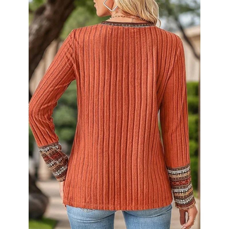 เสื้อยืดคอกลมพิมพ์ลายแขนยาวสำหรับผู้หญิง, เสื้อยืดลำลองผ้าถักใส่สบาย