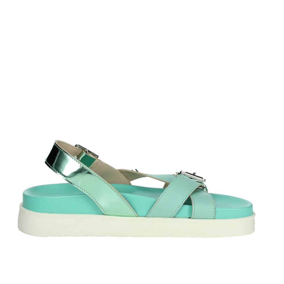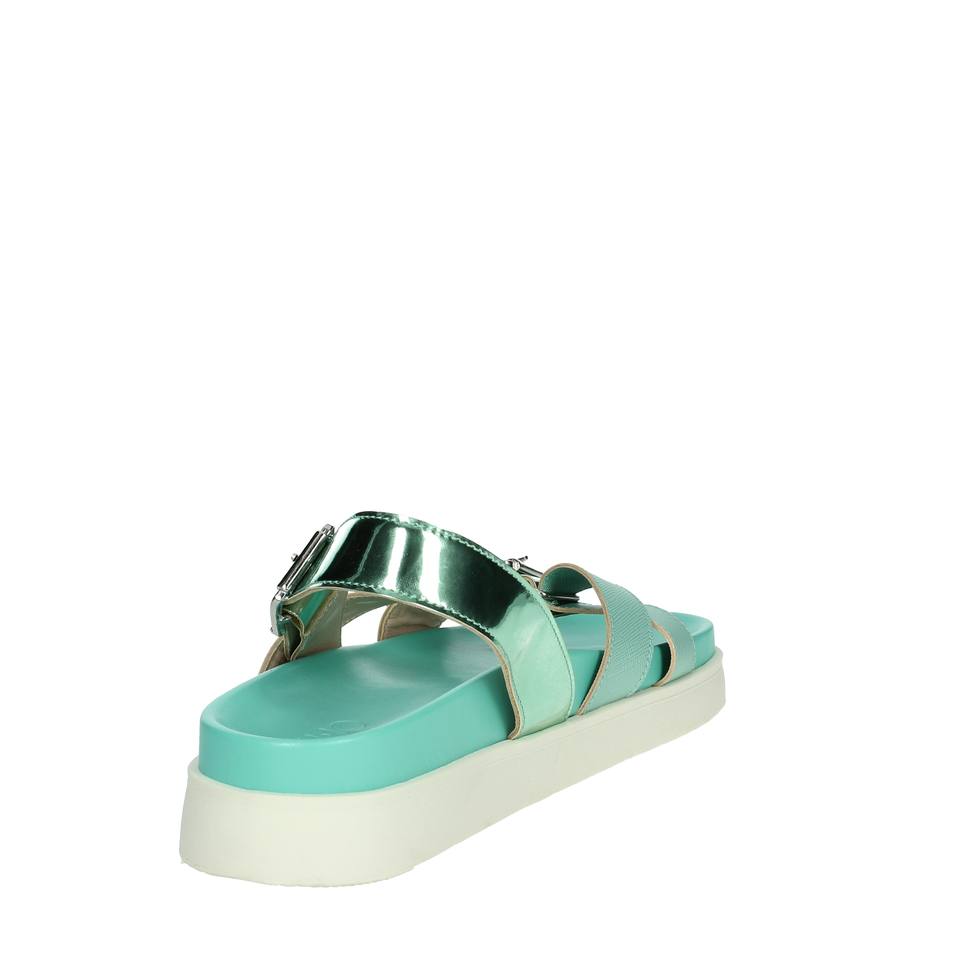 Women's Fashionable Satin Heeled Sandals Silver 4A4727 EX257 Ankle Strap Platform with PU Insole
