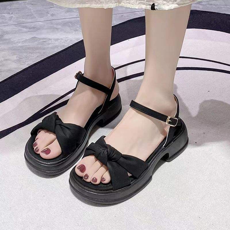 รองเท้าแตะชายหาดแฟชั่นสำหรับผู้หญิงสำหรับฤดูร้อนรองเท้าชายหาดแบบผูกเชือกหนาแบบใหม่สำหรับการค้าต่างประเทศ