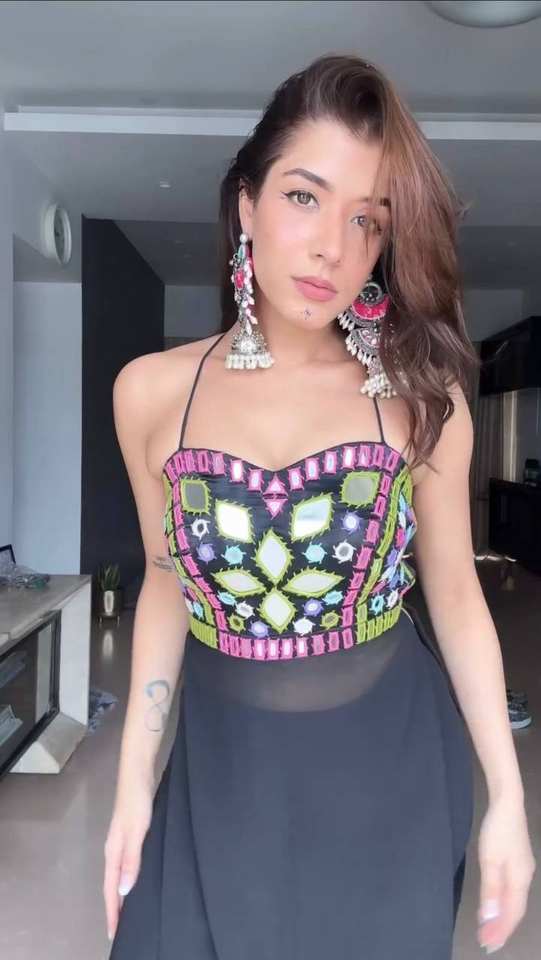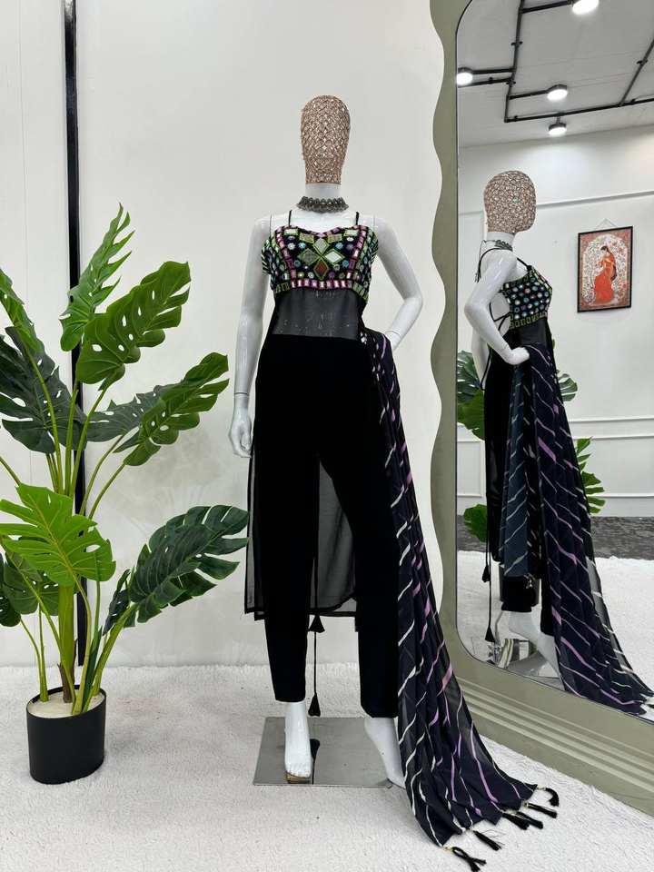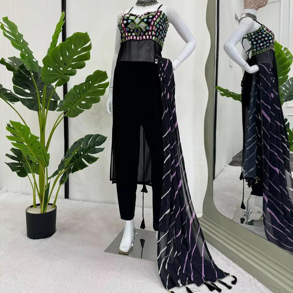 ชุดคุर्ตาผ้าจอร์เจตต์สำหรับงานเทศกาลสำหรับผู้หญิง พร้อมผ้าคลุมไหล่ปักลายกระจกแท้และกางเกง - เสื้อผ้าอินเดียและปากีสถาน