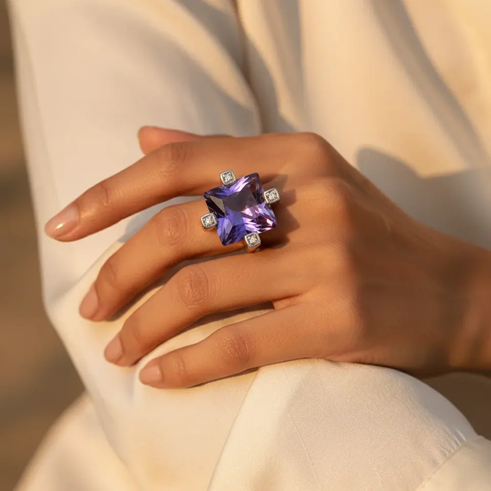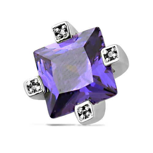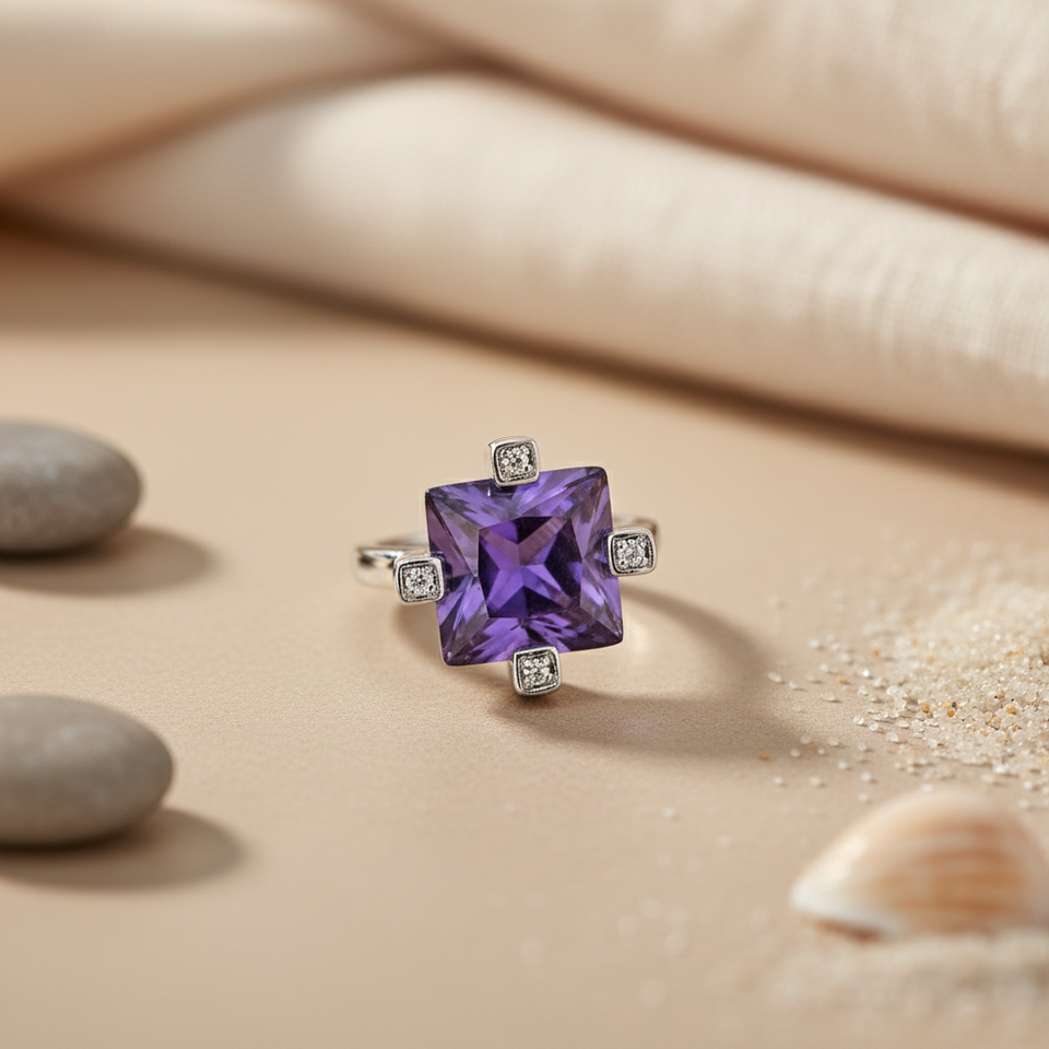 ต่างหูแบบหนีบสำหรับผู้หญิง แหวนเงินประดับพลอยสี่เหลี่ยมอเมทิสต์ เครื่องประดับอัญมณ์
