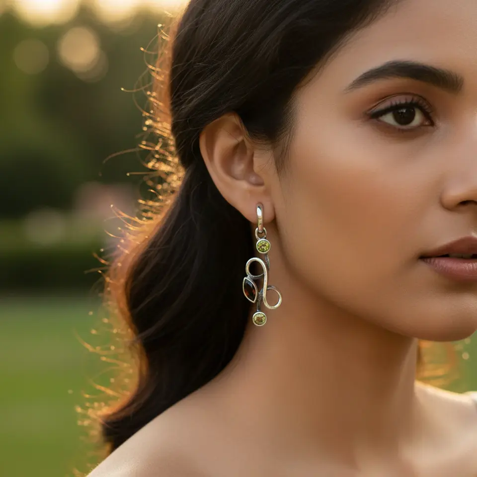 จี้เงินแท้ 925 ทำมือสำหรับผู้หญิง ประดับเพอริดอต โกเมน โรสโกลด์ และเพชรทรงมรกต ดีไซน์ศาสนา